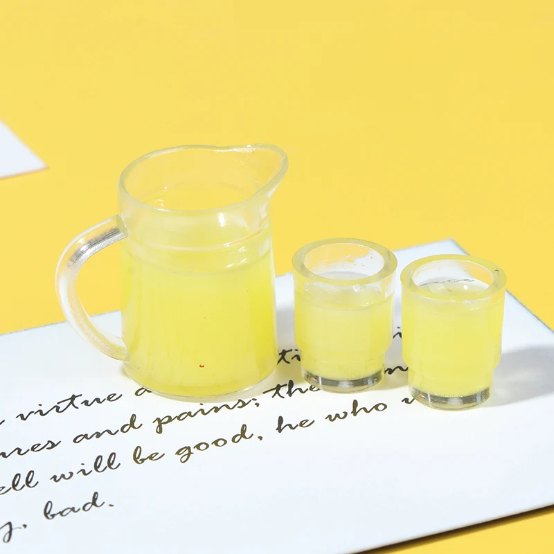 Миниатюрная бутылка для сока для кукольного домика, 3 шт.компл. 1:12 + 2 чашки, кукольные аксессуары для кухни