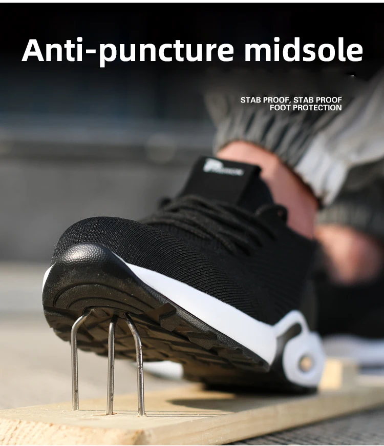 Кроссовки мужские укрепленные, дышащие защитные ботинки, стальной носок, защита от проколов, рабочая обувь, нерушимая