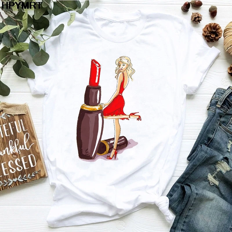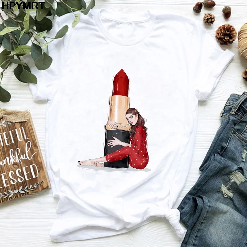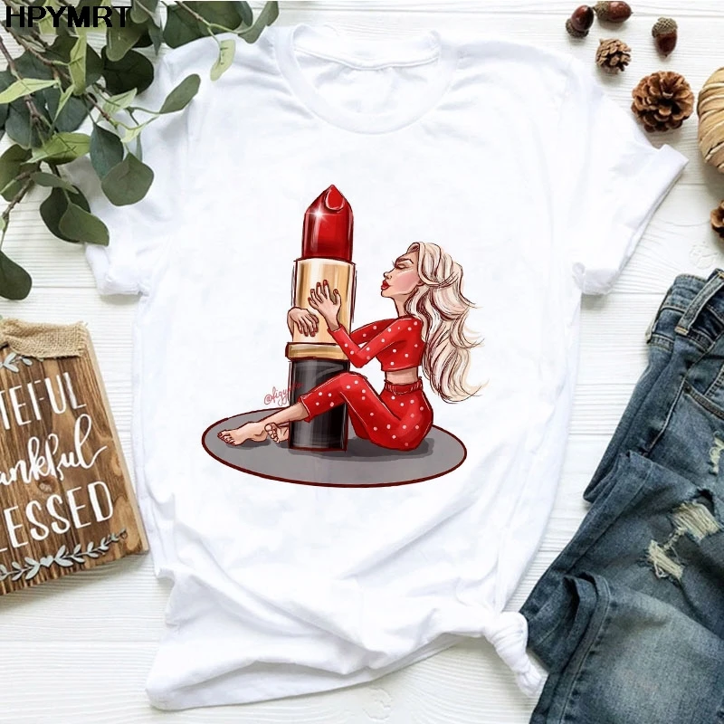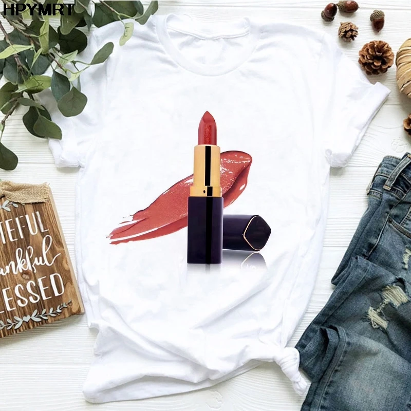 Женская футболка с принтом губ и губной помады, Женская Футболка Ha...