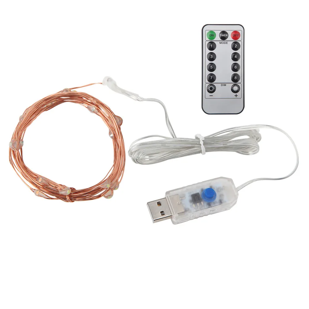 Светодиодная гирлянда с медным проводом, 5 В, питание от USB, 10 м,...