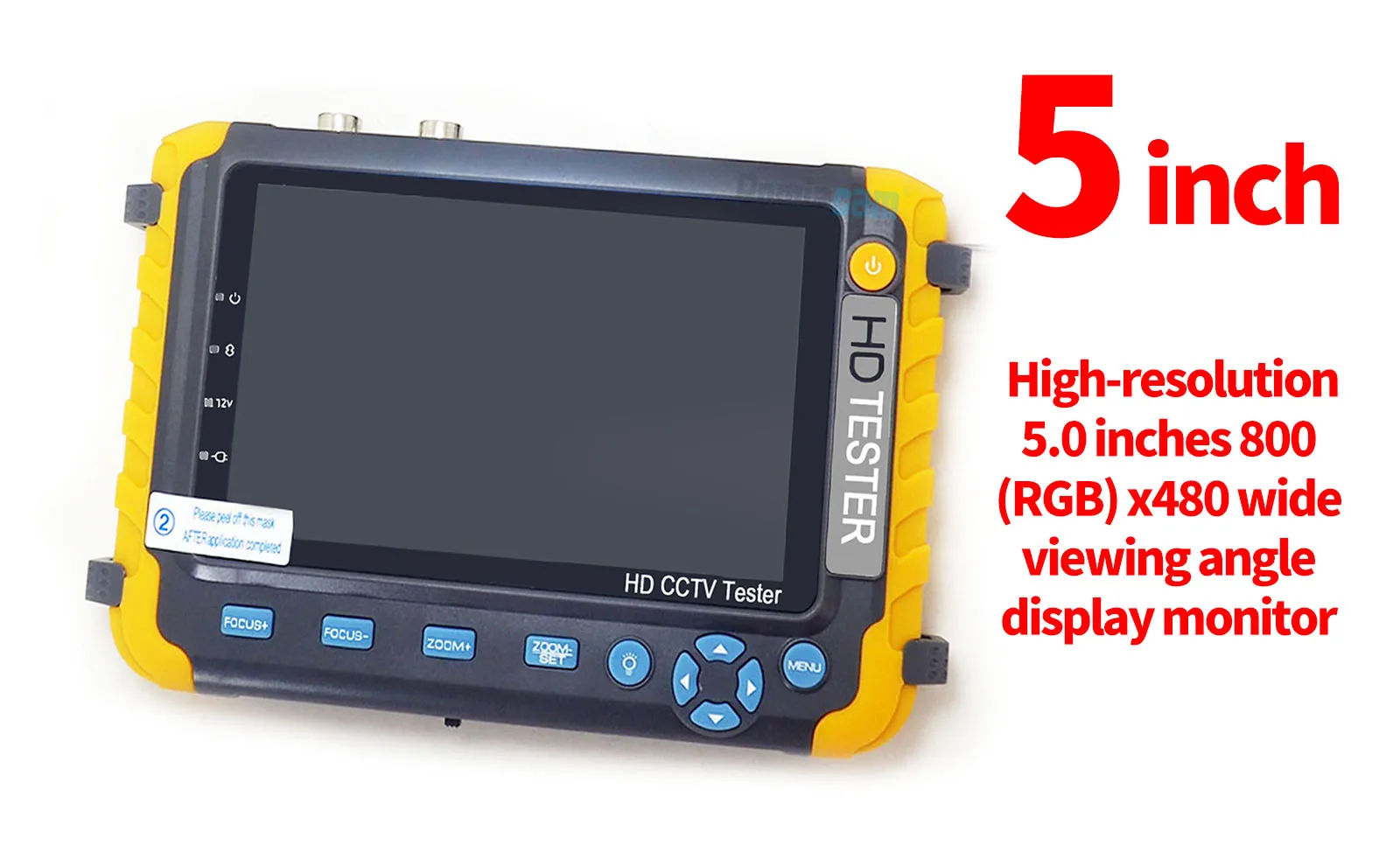 Тестирование видеосигнала Vedio монитор тестер, высокое разрешение 5,0 дюймов 800 (RGB) x480 широкий угол обзора дисплей, угол обзора больше, более интуитивно понятный и легко отображать качество изображения камеры. Контроллер PTZ Тестер для видеомонитора встроенный протокол управления Pelco-D / P PTZ и т. д., через свой собственный интерфейс RS485, пользователь может управлять PTZ вверх, вниз, влево, вправо, И отрегулируйте один машинный зум, фокус, размер диафрагмы. Генератор изображений Мультиформатный генератор изображений с выходом видео, отправка различных стандартных (например, g. PAL, NTSC) цветных графических секций Выходная мощность DC12V 1A Питание камеры с выходом питания DC12V (1A) от тестера. Это полезно для демонстрации и тестирования, когда источник питания недоступен Тестирование звука TEst аудио вход от устройств пикап. Подключите тестер и устройство захвата с помощью аудиокабеля. Улучшенное тестирование сетевого кабеля При помощи тестового порта кабеля UTP на измерителе вы можете проверить подключение сетевого кабеля. Вход VGA/HDMI Поддержка VGA/HDMI 1,0 видео вход, после подключения VGA/HDMI видео, пожалуйста, переключатель для выбора режима HDMI или VGA. Максимальное разрешение-1920x1440(IV8W ) / 1920X1080 (IV8S) TVI Тест камеры Тестирование видеонаблюдения HD TVI, поддержка 8MP (IV8W ) / 720p 25, 30, 50,60fps/ 1080p 25,30fps (IV8S). При входном сигнале TVI тестер отобразит Изображение камеры HD TVI. Тест камеры AHD Тестирование видеонаблюдения HD, Поддержка версии AHD 2,0, 8MP (IV8W ) / 720p 25,30fps/ 1080p 25,30fps (IV8S) . При входном сигнале AHD тестер отобразит Изображение камеры AHD. Тест Камеры CVI Тестирование видеонаблюдения HD CVI, поддержка 8MP (IV8W ) / 720p 25, 30, 50,60fps/ 1080p 25,30fps (IV8S). При входном сигнале TVI тестер отобразит Изображение камеры HD TVI. Светодиодный светильник Это полезно для инженера для установки и обслуживания системы безопасности в ночное время. Светодиодный кнопка включения/выключения, простота в эксплуатации. Графический дисплей батареи Тестер имеет передовую схему контроля мощности и защиты, энергосберегающую низкую мощность, от 4 до 5 часов на одной зарядке, может использоваться обычно в течение 12 часов.