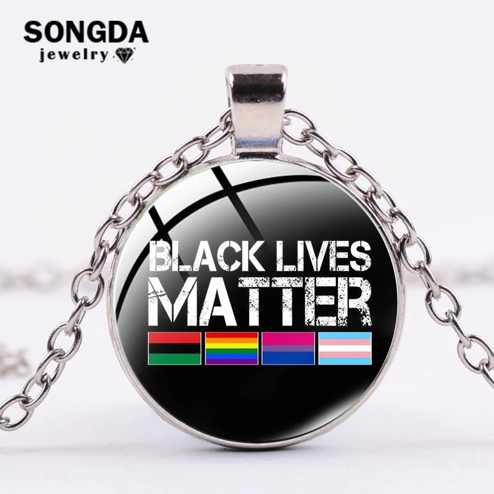 SONGDA Мода черный живет материя Цепочки и ожерелья без справедливости нет мира Джордж Флойд печати Стекло круглыми подвесками, модное оцинкованное звено цепи из сплава