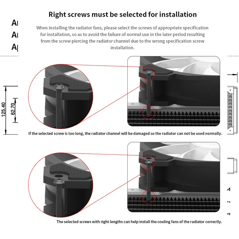 крепление для вентиляторов расположено ровно над водопроводящей трубкой, причём у всех винтов, и если у вас как и у меня, вентилятор будет не 25 мм толщиной, а 20, то повторите мою судьбу. Пропорете трубку и радиатор придёт в негодность. Я работал с несколькими радиаторами, и это первый с таким расположением крепления под кулер,мне и в голову не могло прийти, что инженер может расположить их так неудачно. Не советую никому брать эти радиаторы, а если уж взяли, то будьте внимательнее к длине болта.
