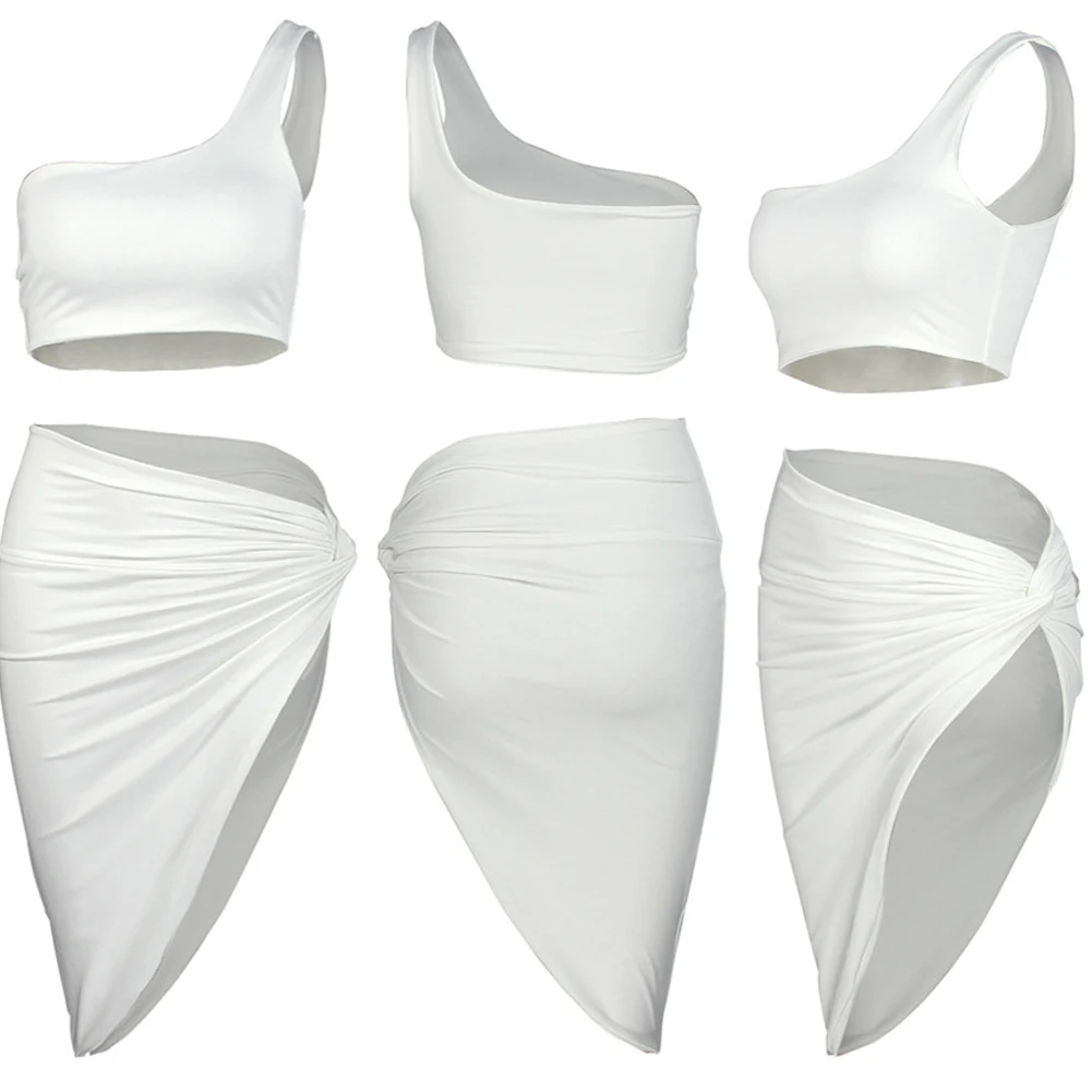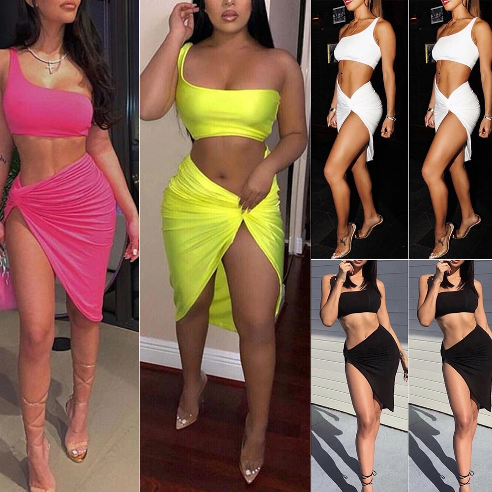 Женский укороченный топ и короткая юбка, облегающий вечерний комплект из двух предметов, летняя пляжная Клубная одежда, платья