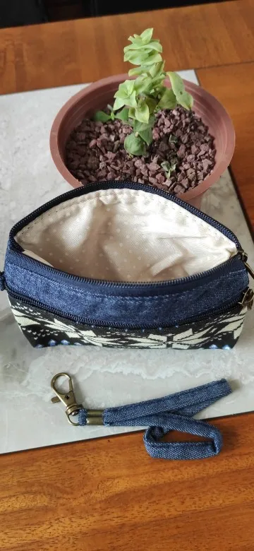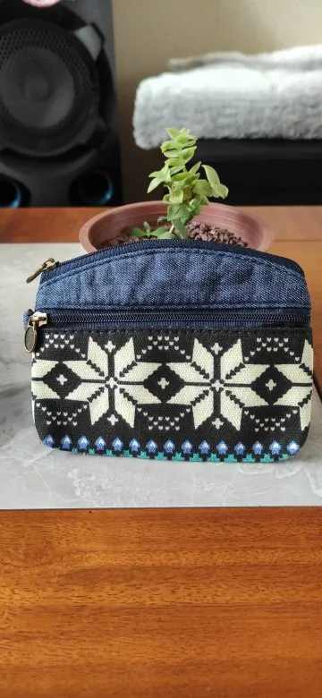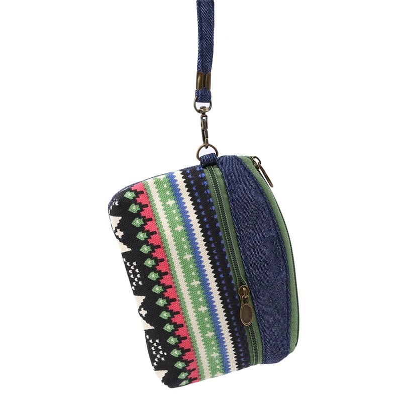Кошелек женский, из хлопковой ткани, с двумя молниями