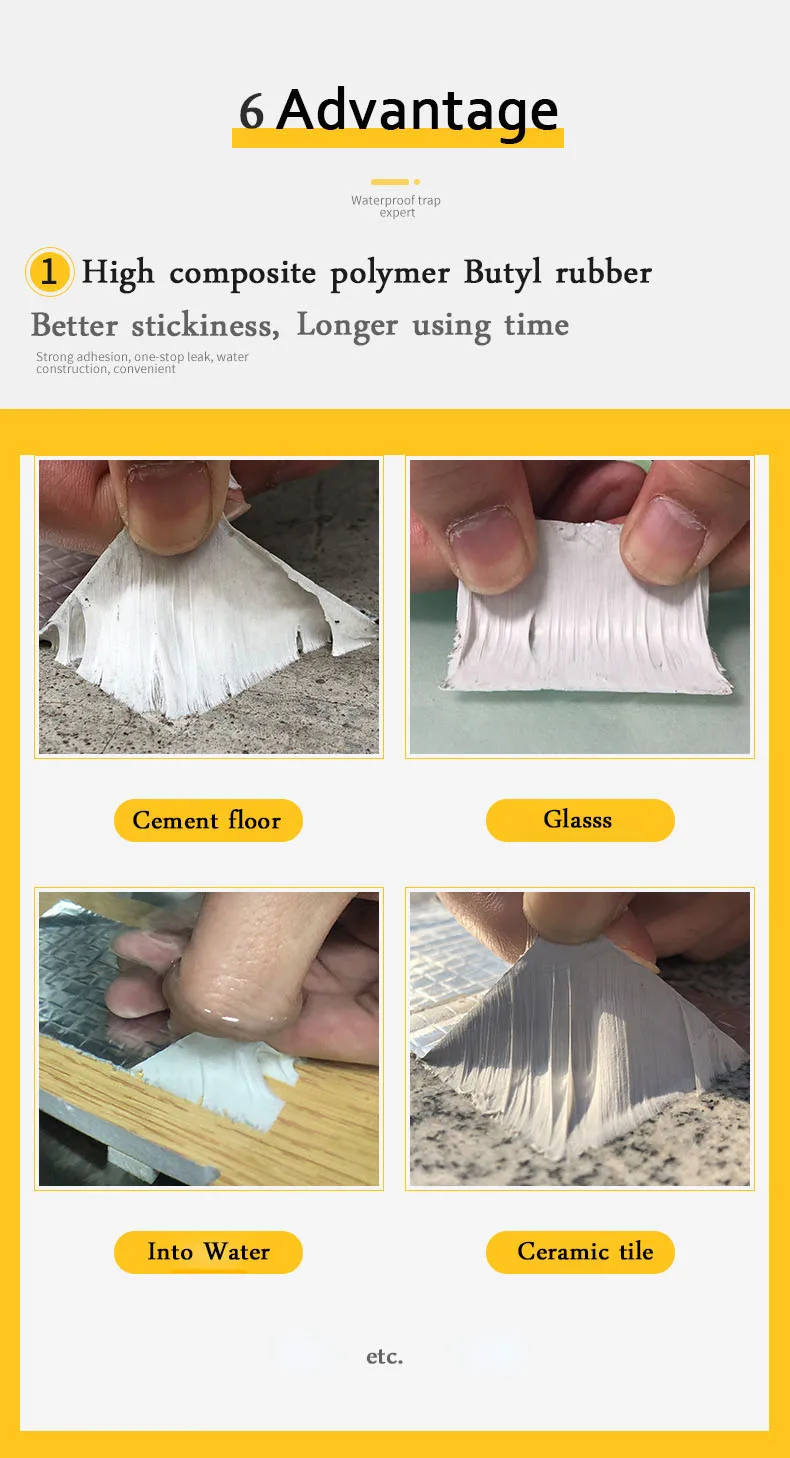 Бутиловая лента из алюминиевой фольги, сверхпрочная Водонепроницаемая плотная самоклеящаяся уплотнительная лента для ремонта крыш труб, клейкая лента для предотвращения утечек