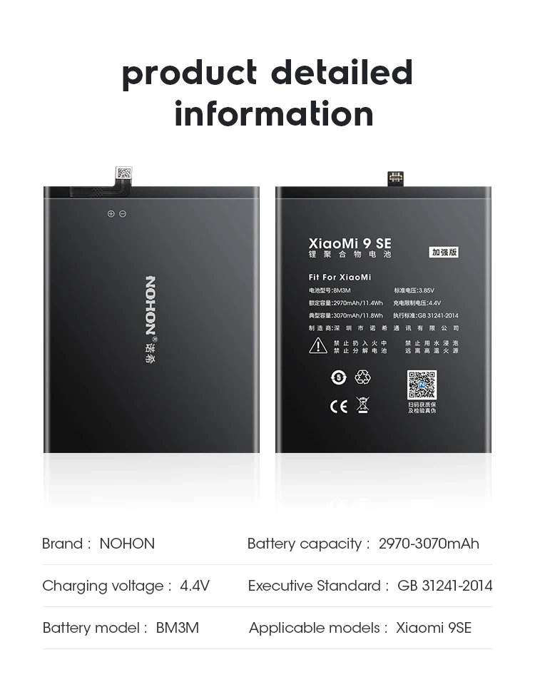 Аккумулятор NOHON BM3D BM3E BM3F BM22 BM39 BM36 для Xiaomi Mi8 Pro ...