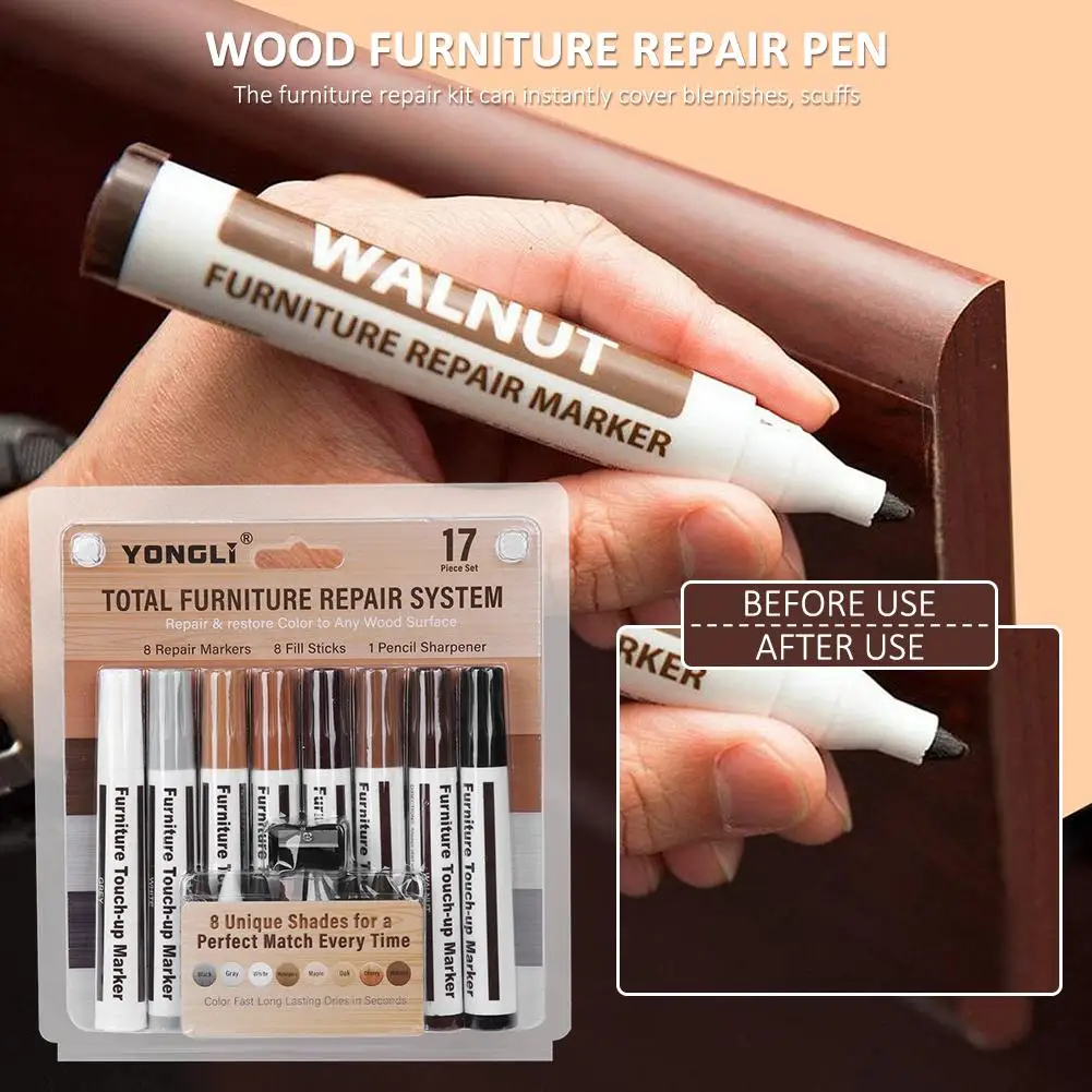Набор для ремонта мебели, деревянные маркеры, ручка для ремонта дерева с восковыми палочками и восковой точилкой для пятен, царапин, полов, 17 шт.комплект