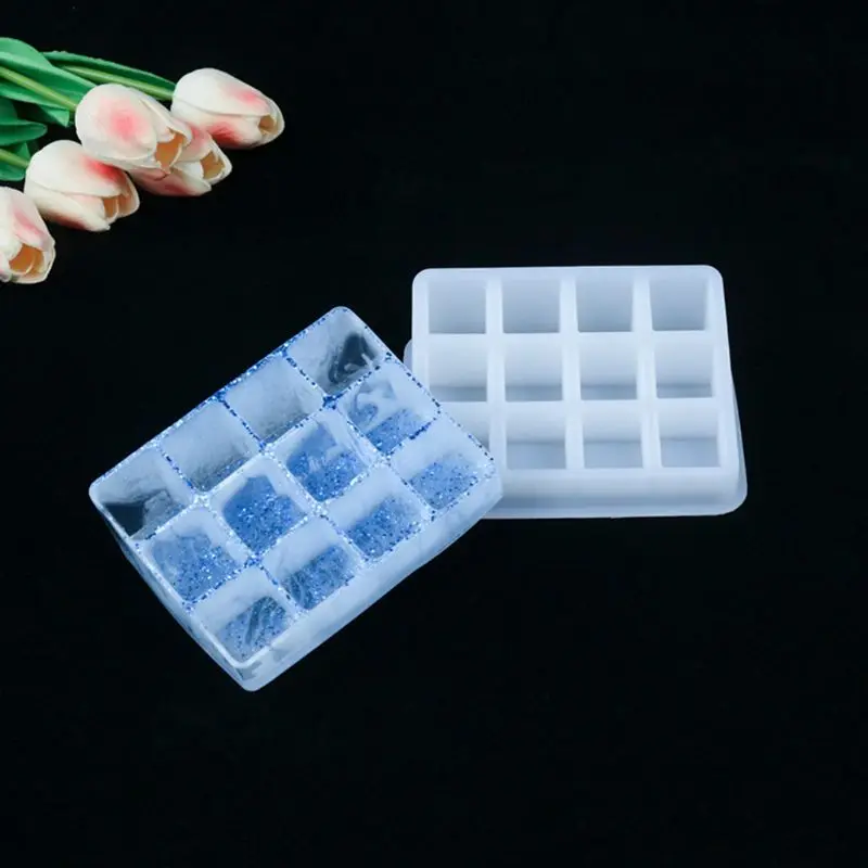 С украшением в виде кристаллов формы для эпоксидной смолы квадратный клетчатый губная помада коробка для хранения литье под давлением формы коробка ювелирных изделий силиконовые формы DIY изделия делая инструменты