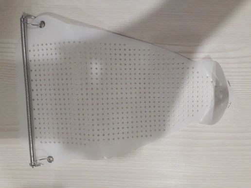 В упаковке пришел сложенным, надеюсь разгладится. Немного маловат, но все же натянули на утюг))