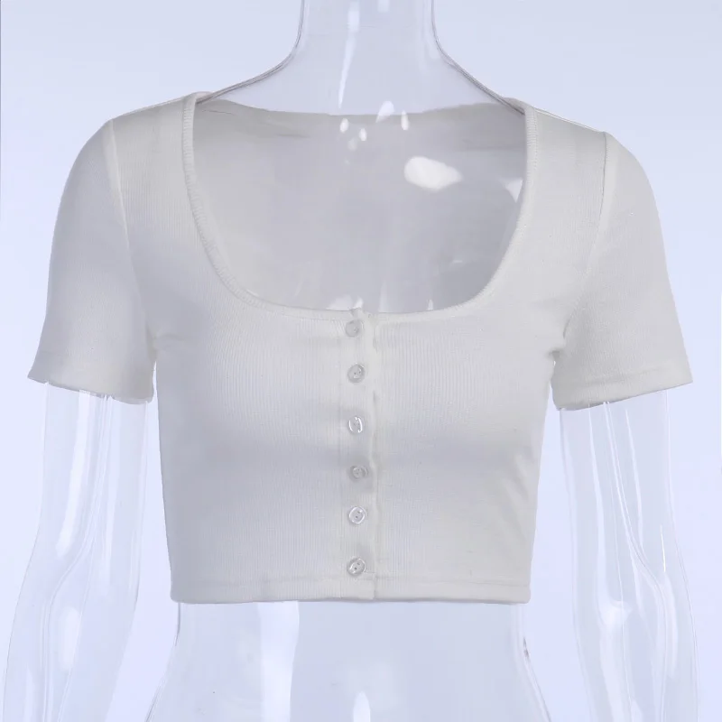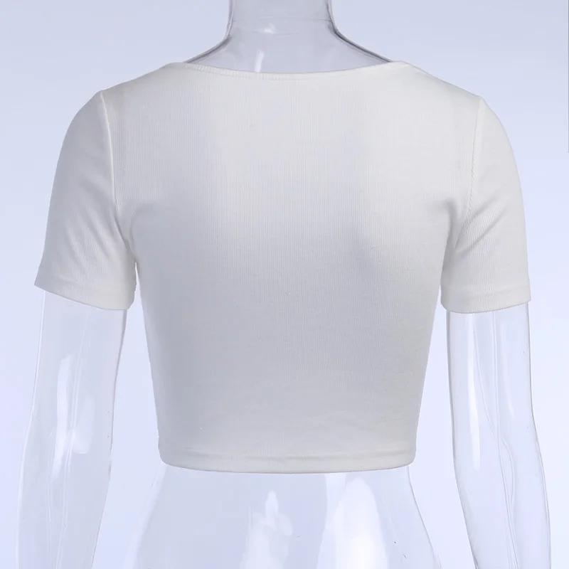 Женский кроп-топ с квадратным вырезом InsGoth, повседневный однотонный белый или черный топ с коротким рукавом, облегающая футболка на лето