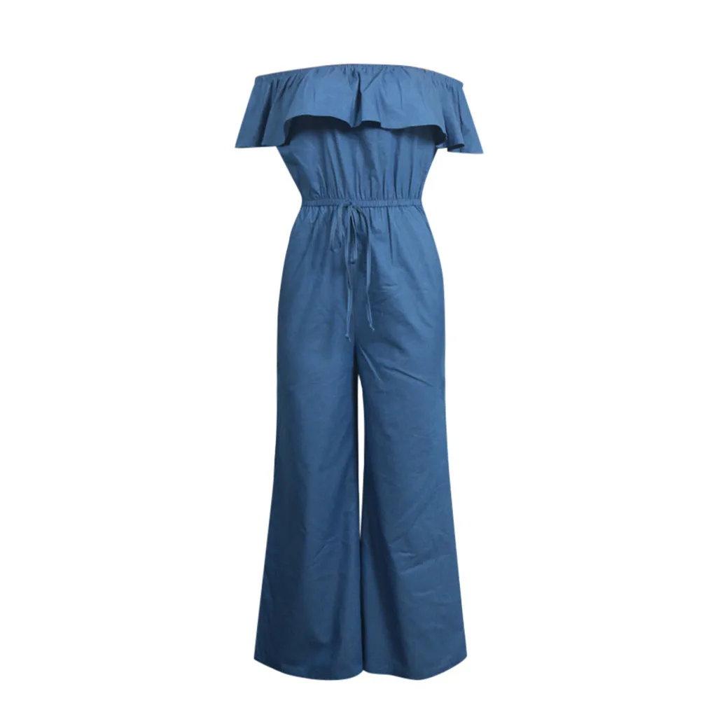 Женский джинсовый комбинезон с открытыми плечами, длинный комбинезо...