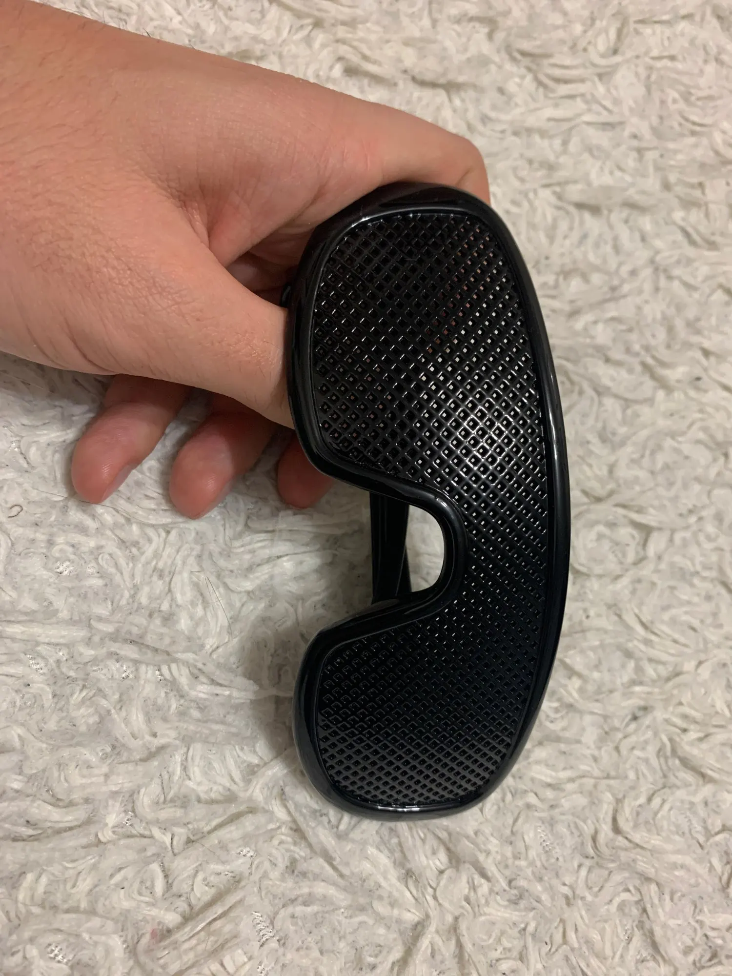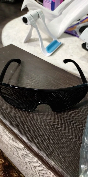 Очень хороший тренажер. Качественный пластик, гладенький без царапин, глянцевый. Нигде не давит, ничем не царапает. Полностью закрывает сеточкой обзор - можно смотреть в любом направлении После них намного легче глазам, картинка проясняется (у меня близорукость, ношу -1). Посылка отслеживалась. Рекомендую товар и продавца.