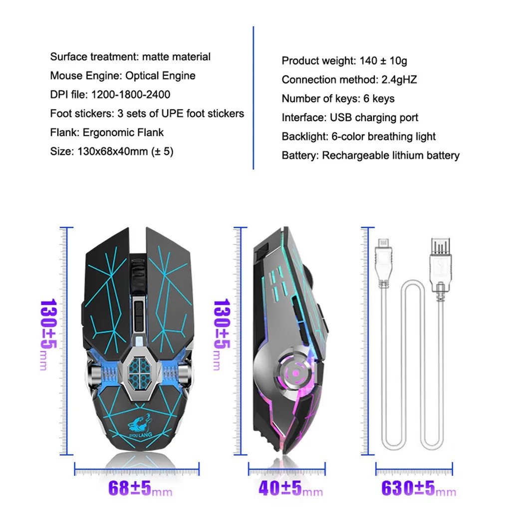 Игровая мышь Wolf X13 с 6 кнопками, 2400DPI, беспроводная, с зарядк...