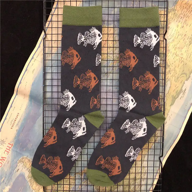 Взрослые хлопковые носки, черепа Piranhas Piranha Skeleton Human Skull INNCH, официальный оригинальный дизайн 2020, уличная мода Sox