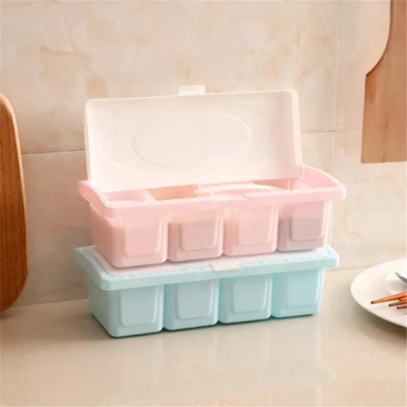 Пластиковый стандартный контейнер с 4 ячейками, стойка для хранения специй, банка с ложкой, кухонные инструменты, контейнер для хранения специй