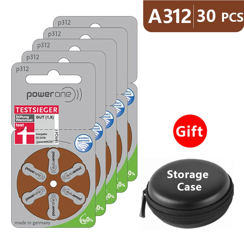Слуховой аппарат батареи Размер 312 za Power one, упаковка 30, коричневый Tab PR41 1,45 V тип A312 AU-6nh цинковый воздушный аккумулятор p312 с Чехол