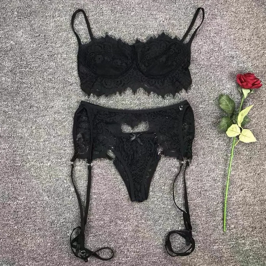 Комплект женского кружевного нижнего белья с подвязками, 3 шт.