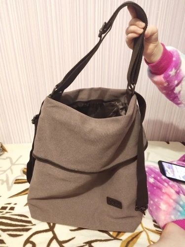 Сумка вместительная. Все швы ровные и аккуратные. Качество на 5+. Одно "но"- чтобы носить сумку в качестве рюкзака ,надо очень сильно извернуться. Лямка одна общая. При надевании полностью перетягивается на одну сторону.