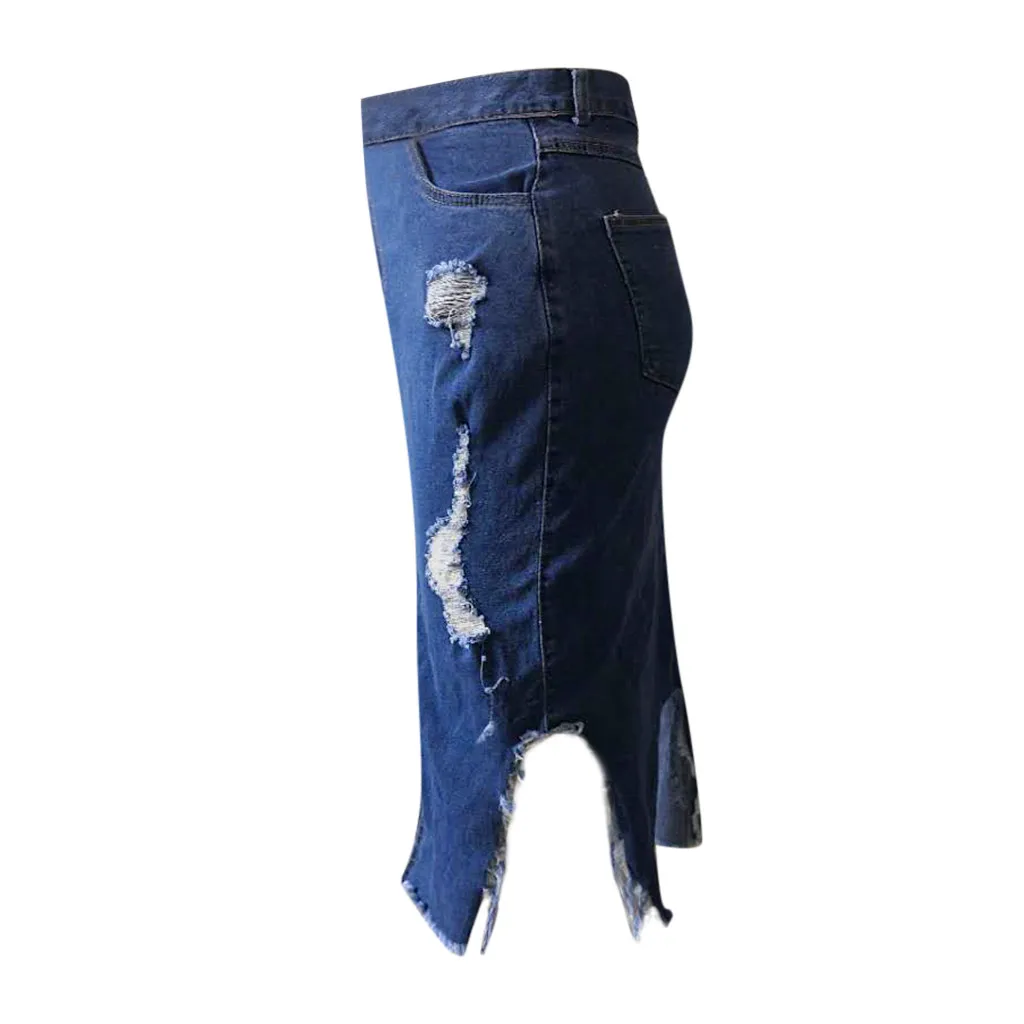 Летняя женская Однотонная юбка с завышенной талией, асимметричная модная женская рваная джинсовая юбка с разрезом для вечевечерние в уличном стиле # g3