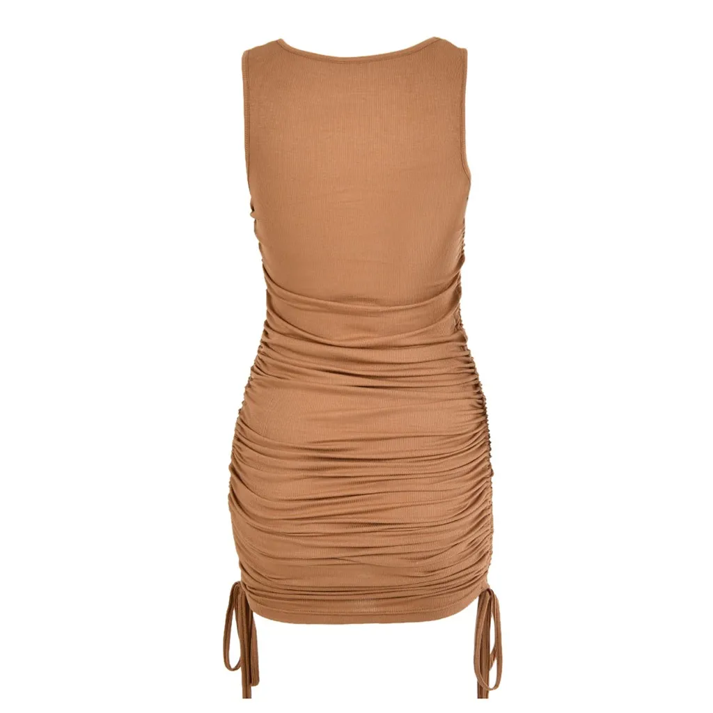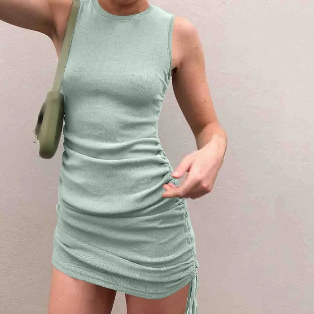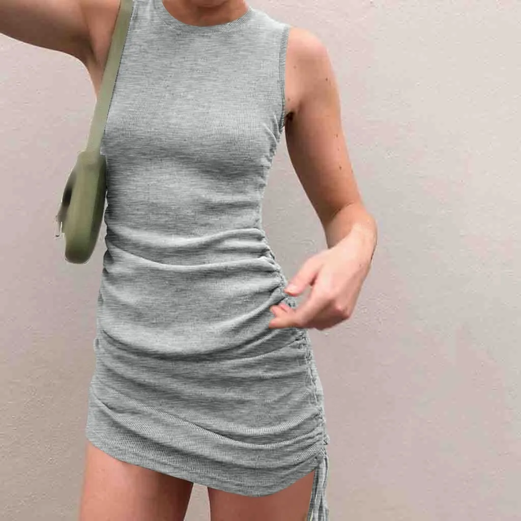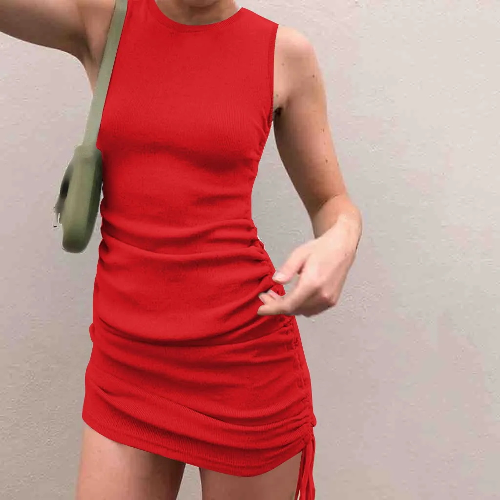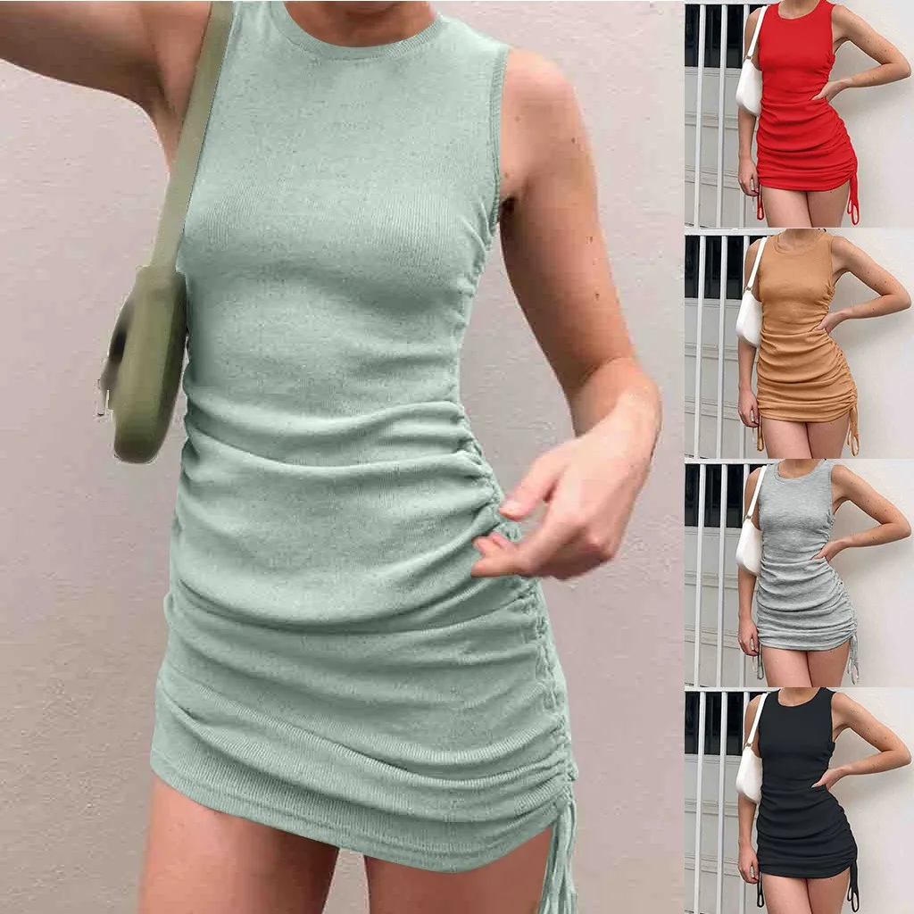 Женская хлопковая однотонная боковая Сексуальное облегающее платье-майка с завязками на бедрах
