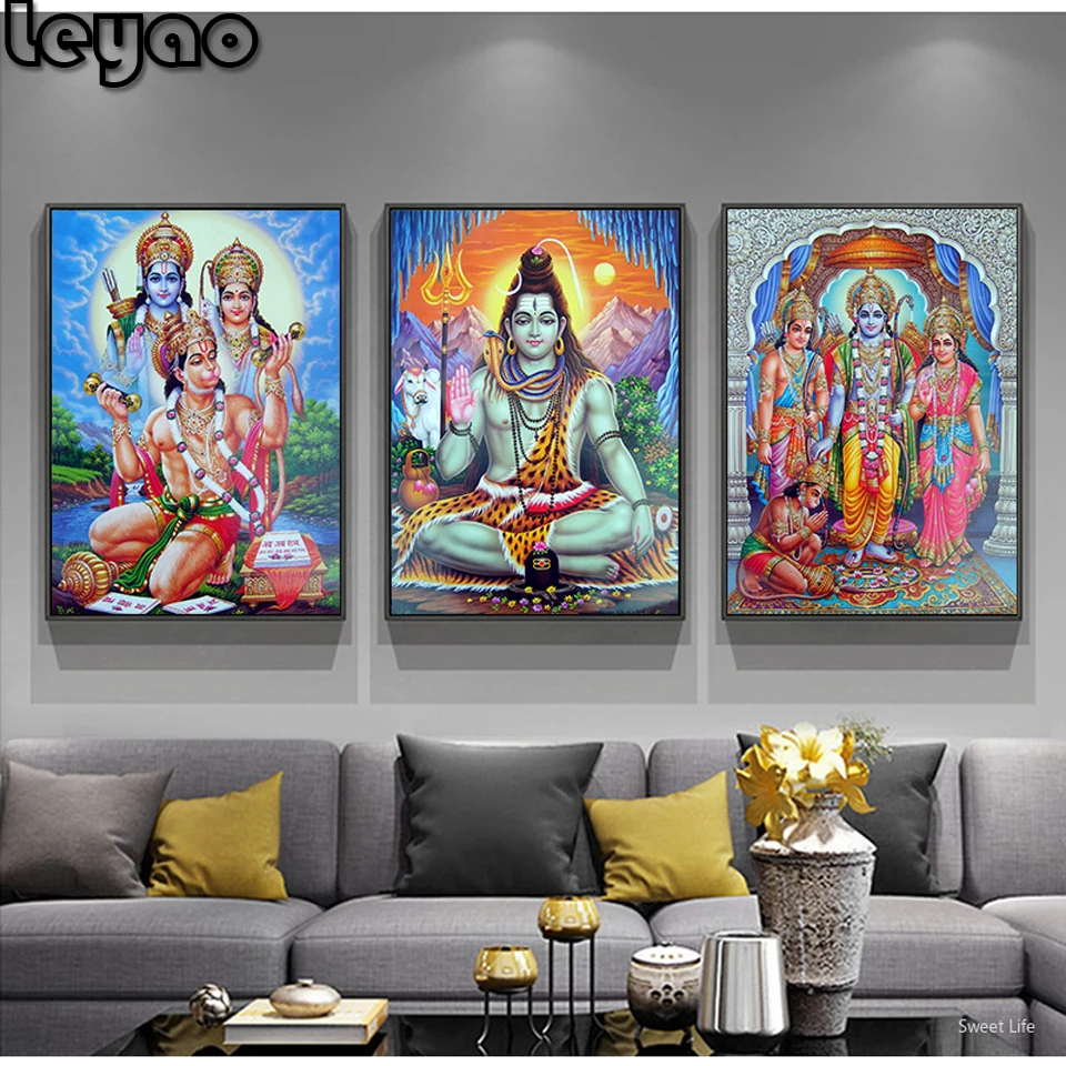 Diy алмазная живопись Shiva Parvati Ganesha, индийское искусство, фигурка индуистского бога 5D, мозаика Бриллиантовая вышивка, религиозная 3 шт.компл.