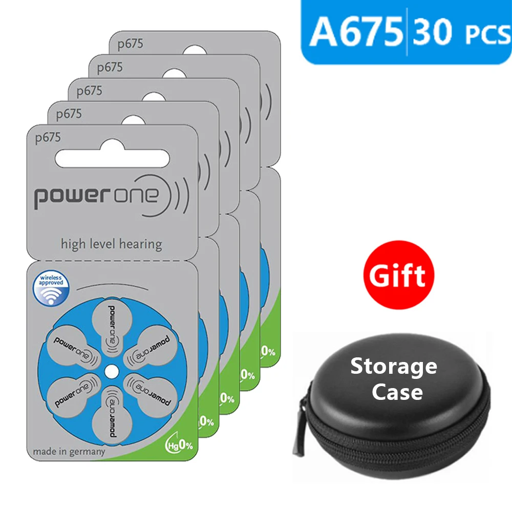 Батарейки для слухового аппарата, размер 675 za Power one, комплект из 30, синий Tab PR44, 1,45 в, тип A675, Цинковый воздушный аккумулятор p675 с чехлом