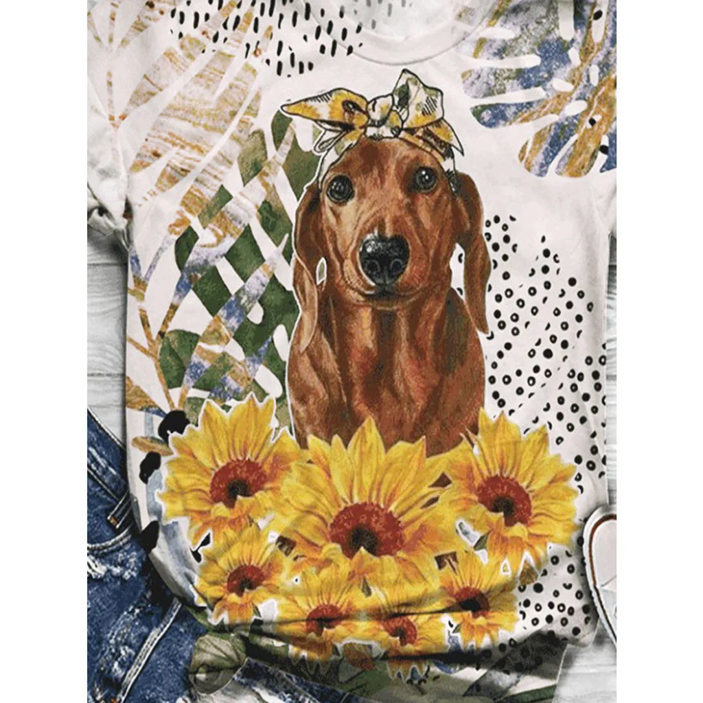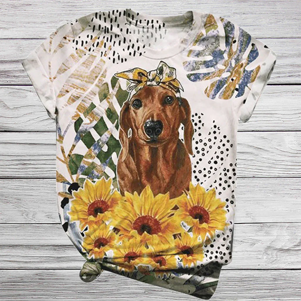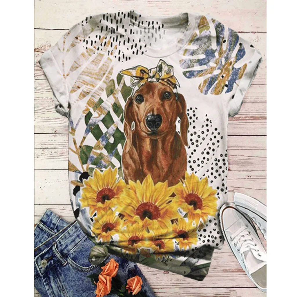 1. Особенности: повседневные топы, 3d-принт с животными, Повседневная футболка, собакаПринт, круглый вырез, МодныйФутболка с короткими рукавами; Пуловер; Футболка; Повседневные топы; Повседневная одежда; Стильный и модный дизайн; Осенняя Повседневная блузка.