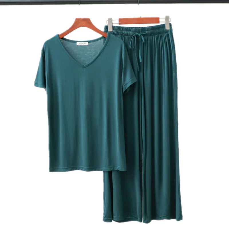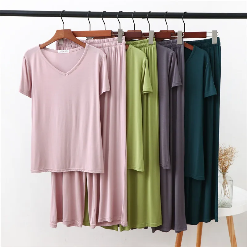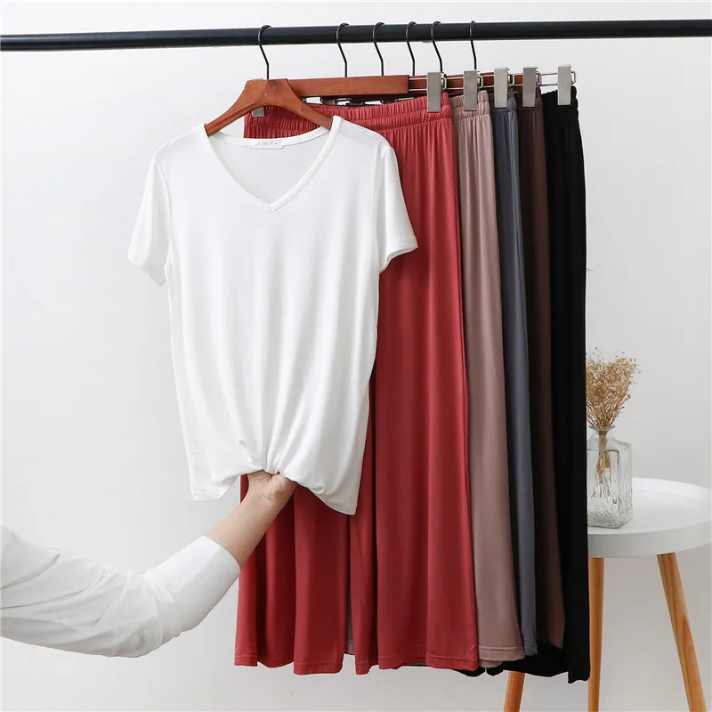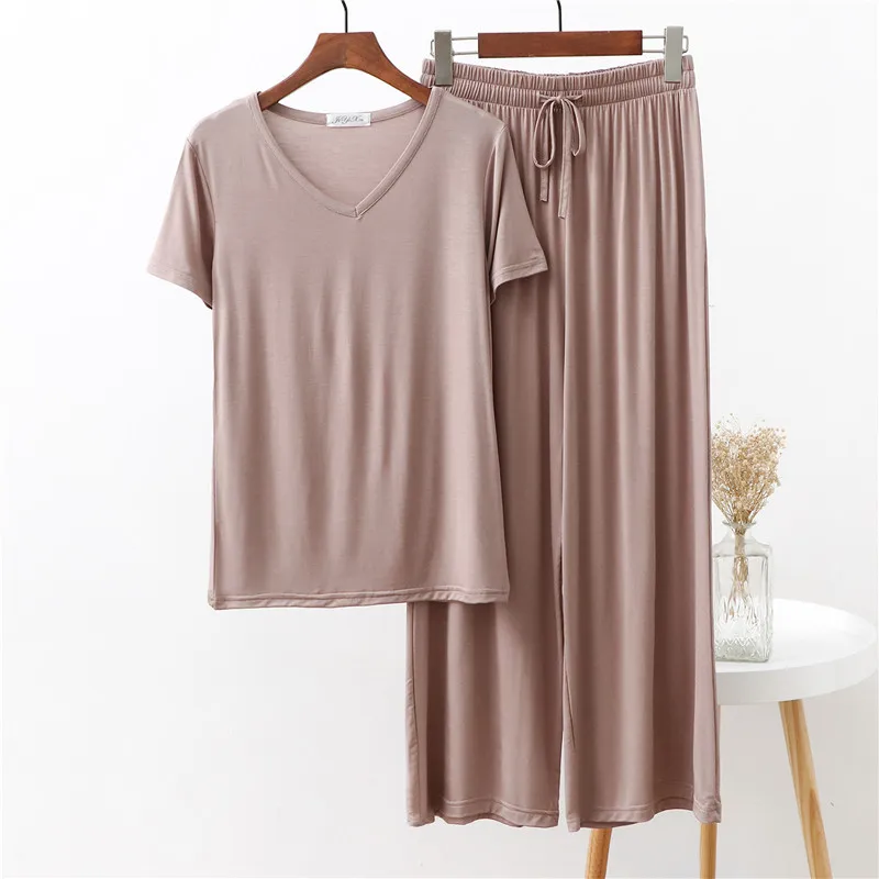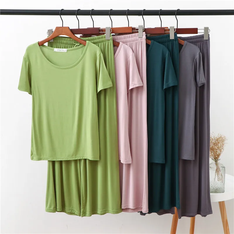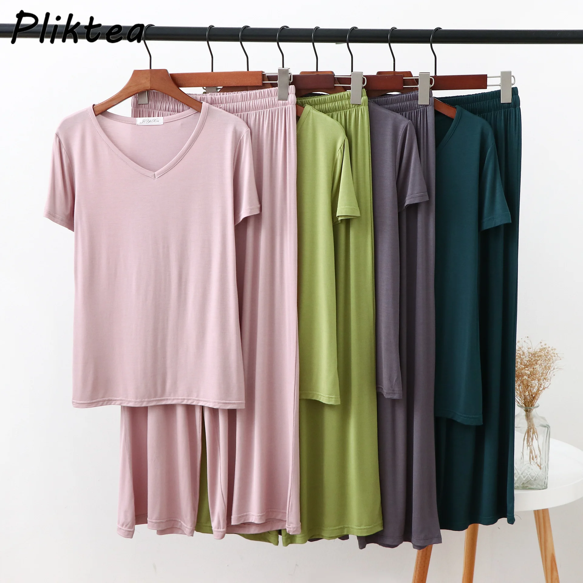 Женская домашняя одежда из двух предметов из модала Pliktea, однотонная свободная Пижама, футболка с коротким рукавом и брюки, летняя домашняя одежда для женщин