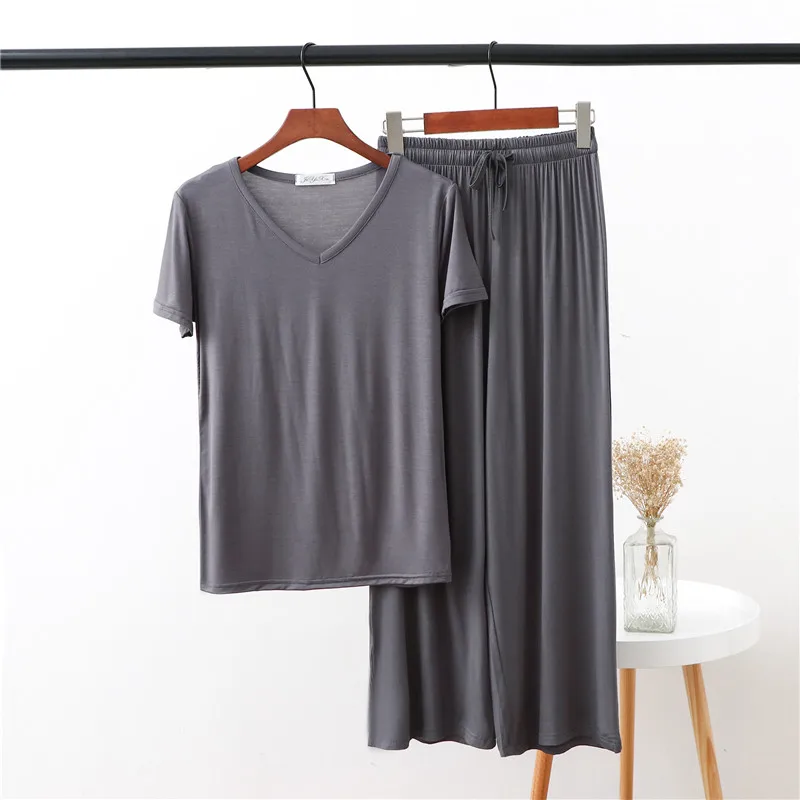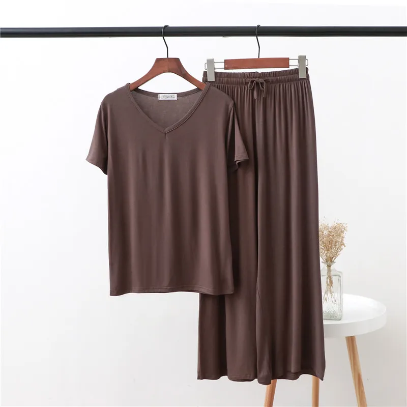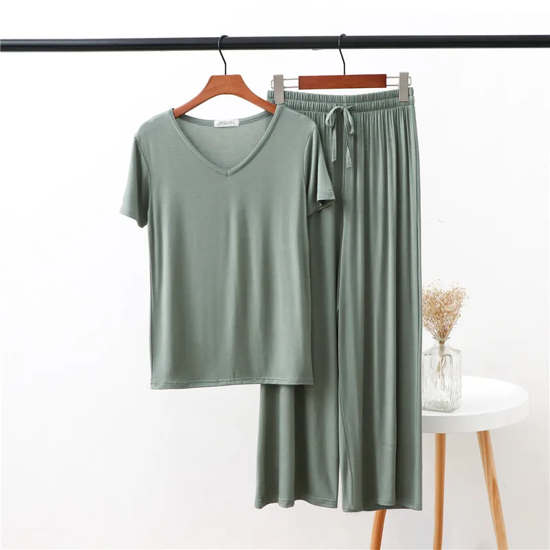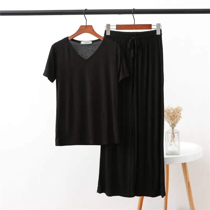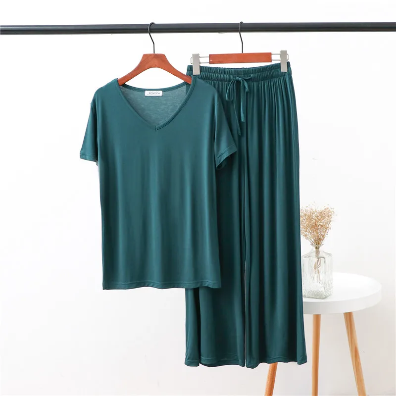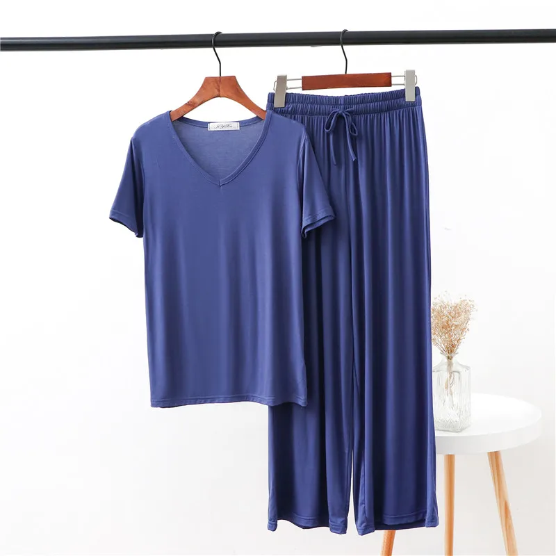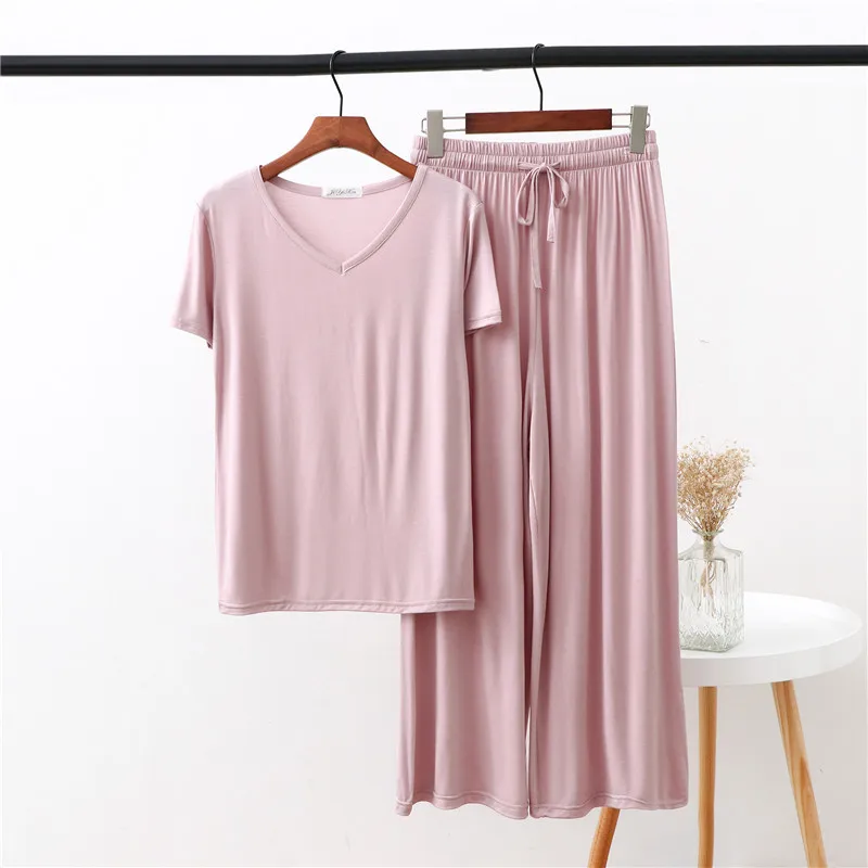 Женская домашняя одежда из двух предметов из модала Pliktea, однотонная свободная Пижама, футболка с коротким рукавом и брюки, летняя домашняя одежда для женщин