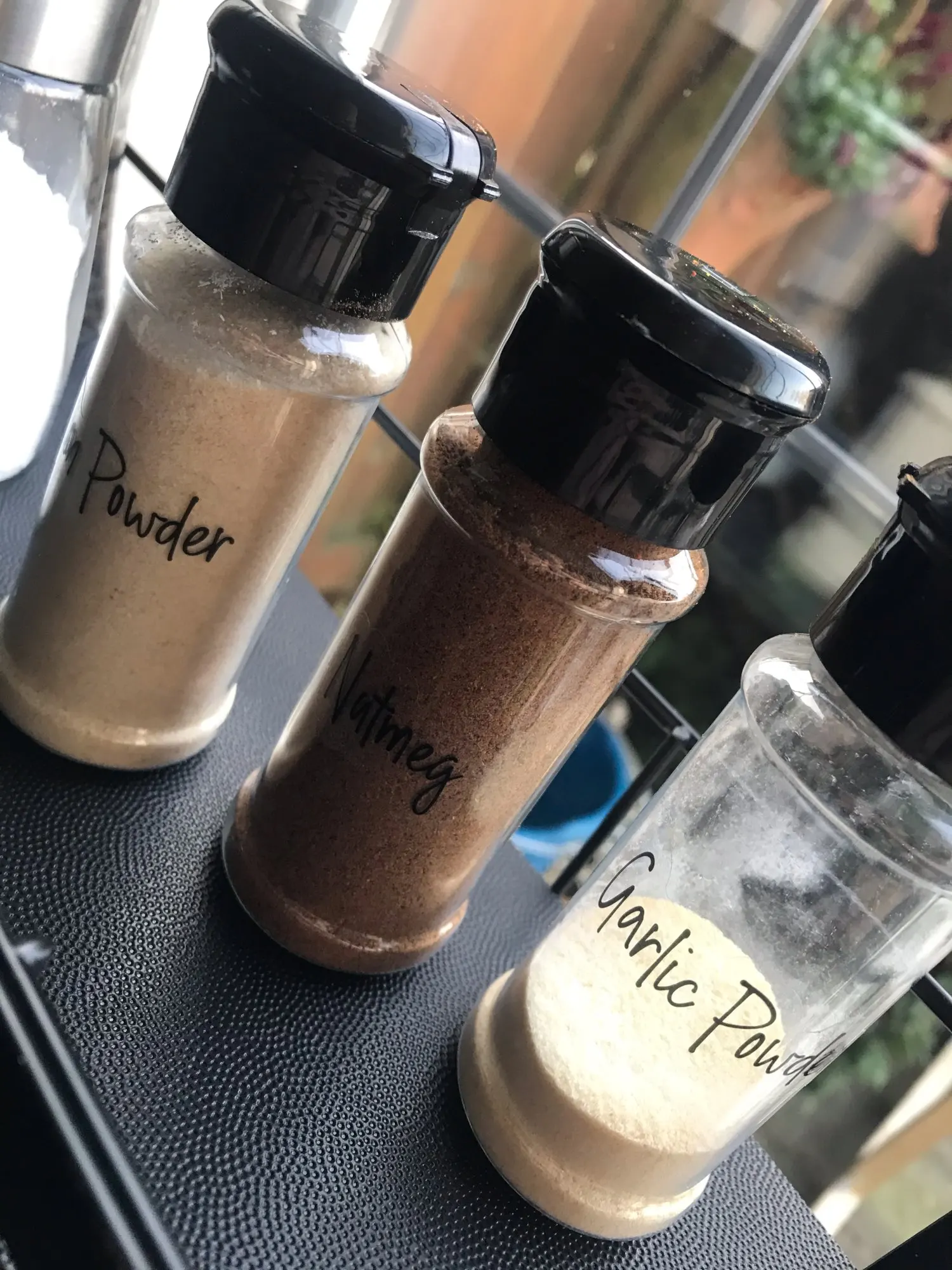 Бутылки очень маленькие, а отверстия для приправ очень маленькие. Изначально мы хотели использовать это для хранения таких вещей, как семена кунжута и т. Д., но он не будет помещаться через отверстия