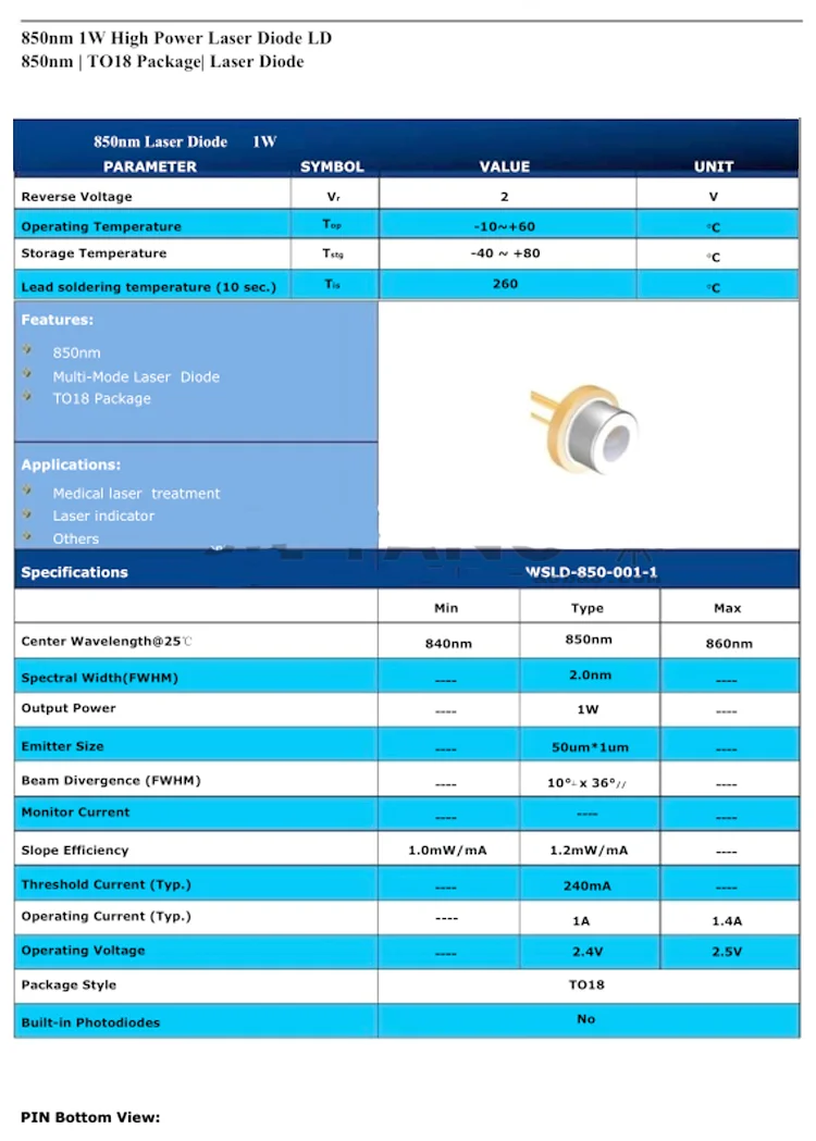 ИК-диод JDSU, TO18-5.6mm нм, 1 Вт, 1000 МВт, для самостоятельной сборки лаборатории, высокая мощность