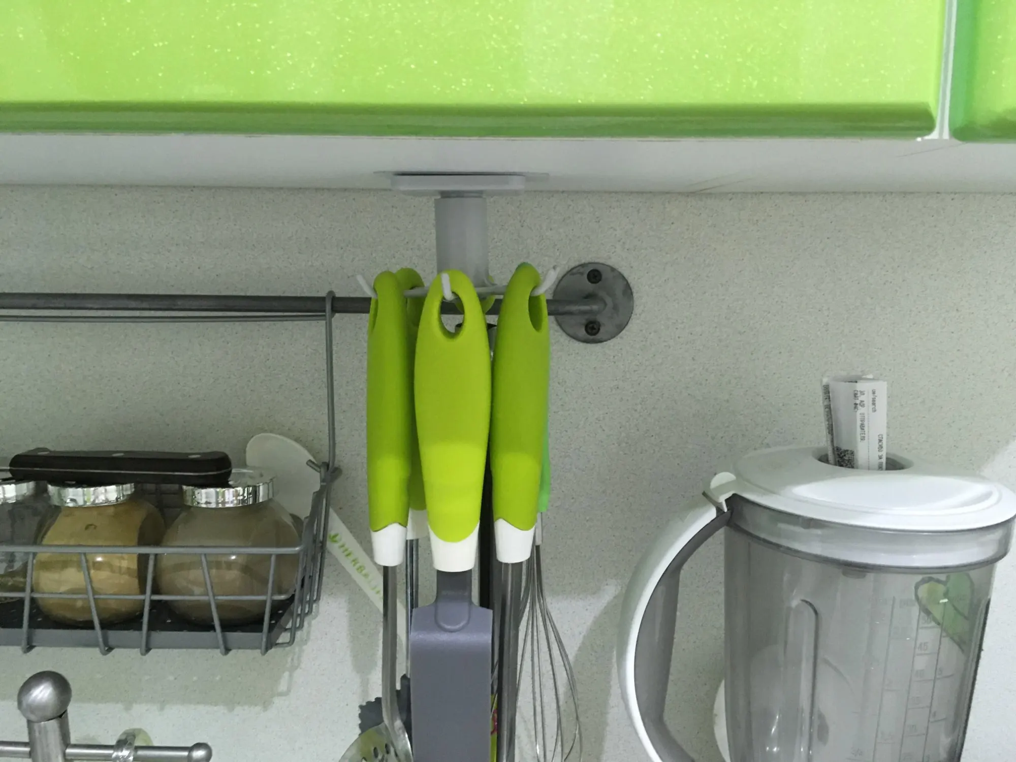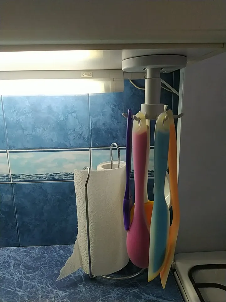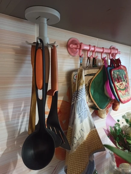 Отличная покупка, только думала немного короче, когда все повесила оказалось почти до столешницы. Но это не страшно. Держишься хорошо. Уже месяц использую. У меня все лопатки пластиковые, не могу судить выдержит ли металические и какой вес выдерживает. Крутиться легко. Однозначно рекомендую!