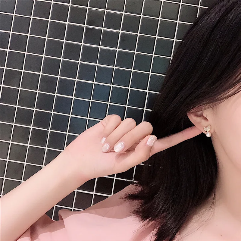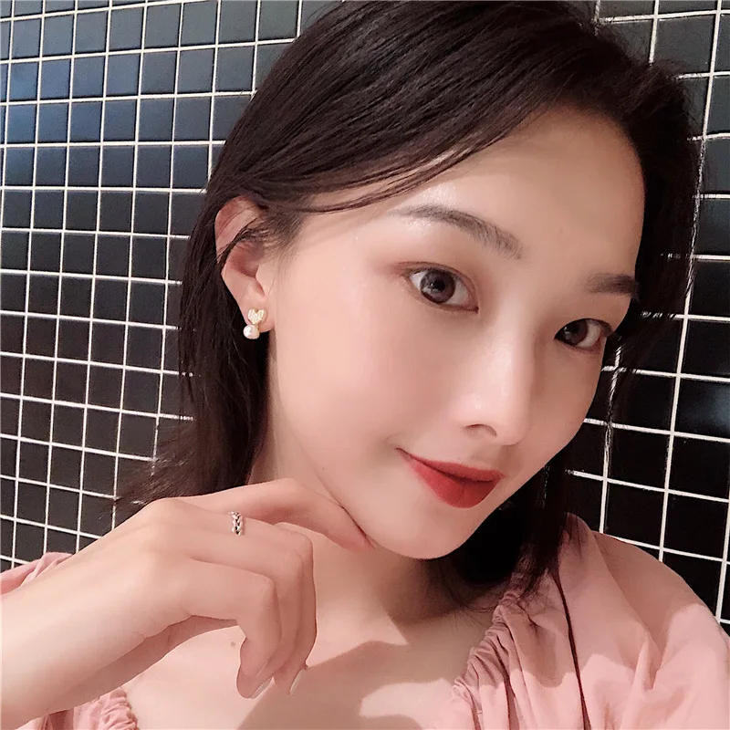 Милые серьги с жемчугом в форме сердца для женщин, маленькие простые серьги-гвоздики, корейские серьги из золотистого сплава, модные ювелирные украшения для свадебной вечеринки