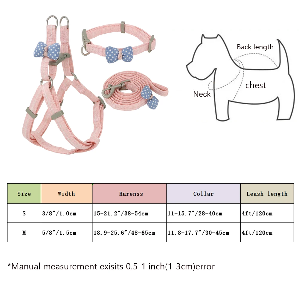 Шлейка для собак с поводком, регулируемый ошейник с мягким бантом, для маленьких и средних питомцев, для прогулок на открытом воздухе