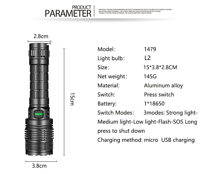 [Шестерни] A: 5 файлов: сильный светильник-средний Светильник-низкий светильник-вспышка-SOS Длительное нажатие для выключения;