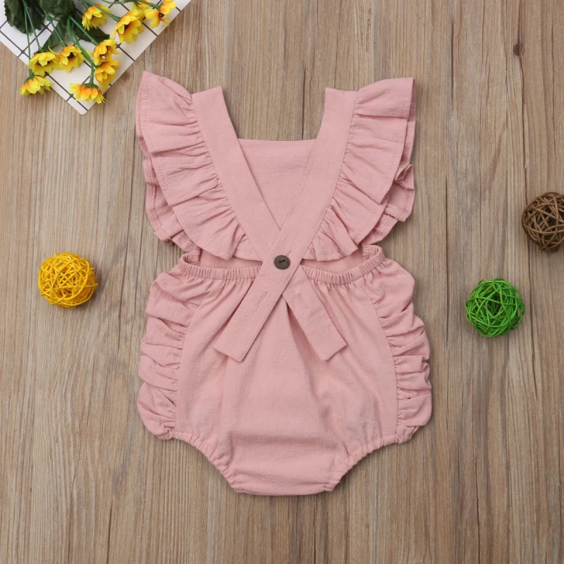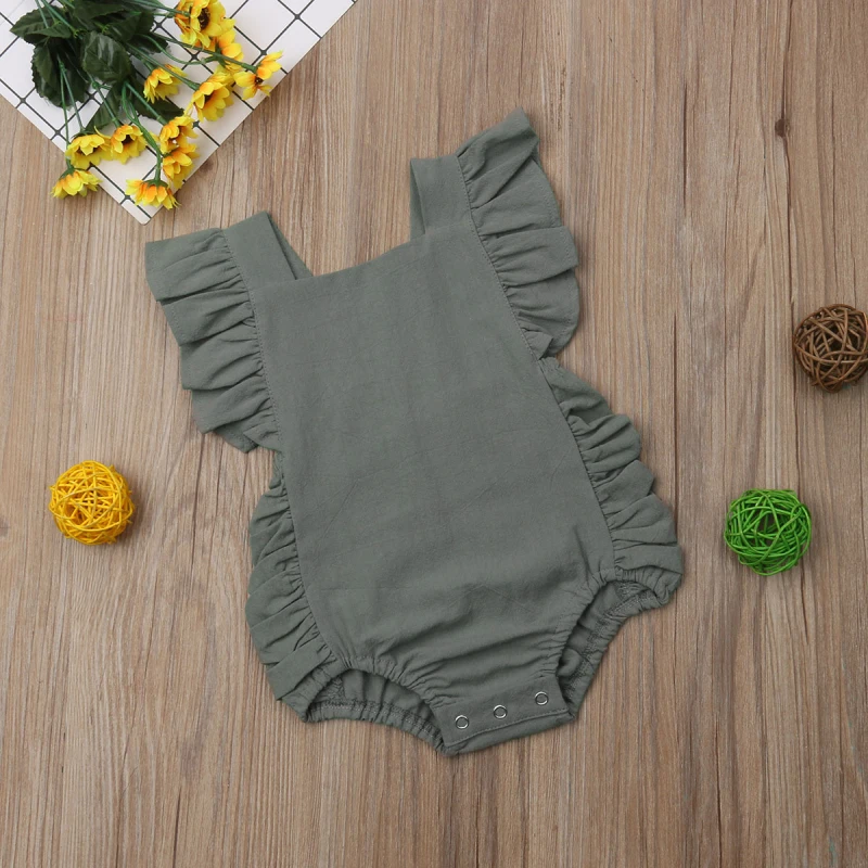 Для маленьких девочек гофрированные однотонные Цвет без рукавов с открытой спиной Комбинезон спортивный костюм для новорожденных; Одежда для детей и девочек, пляжный костюм