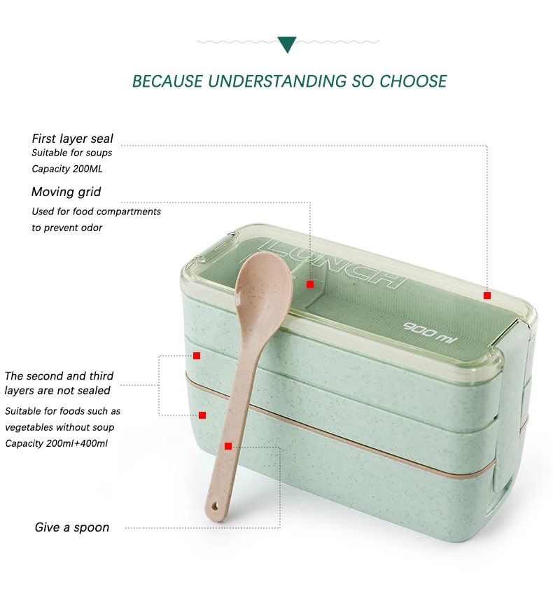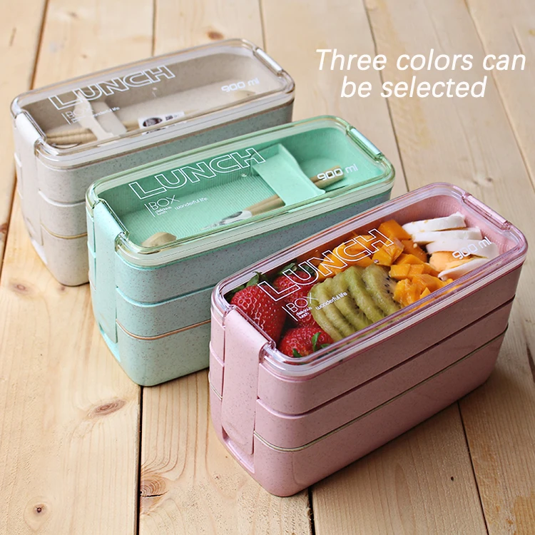 Портативный Ланч-бокс Bento 900 мл, 3-уровневые контейнеры из пшеничной соломы, обеденная посуда для микроволновой печи, контейнер для хранения пищи, детский пищевой контейнер, Ланчбокс