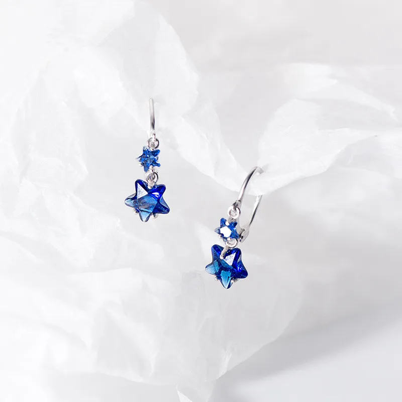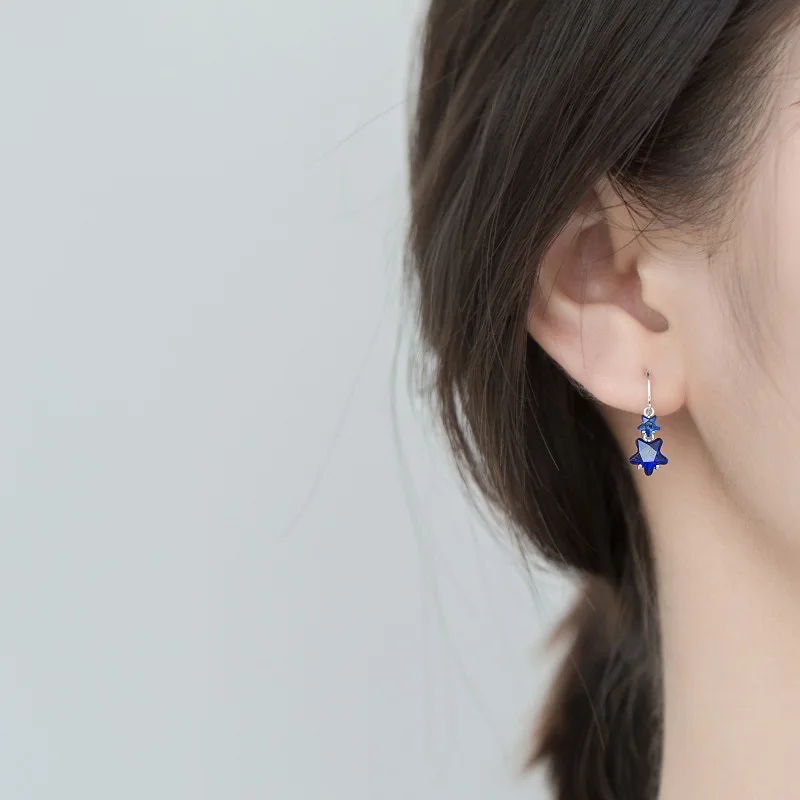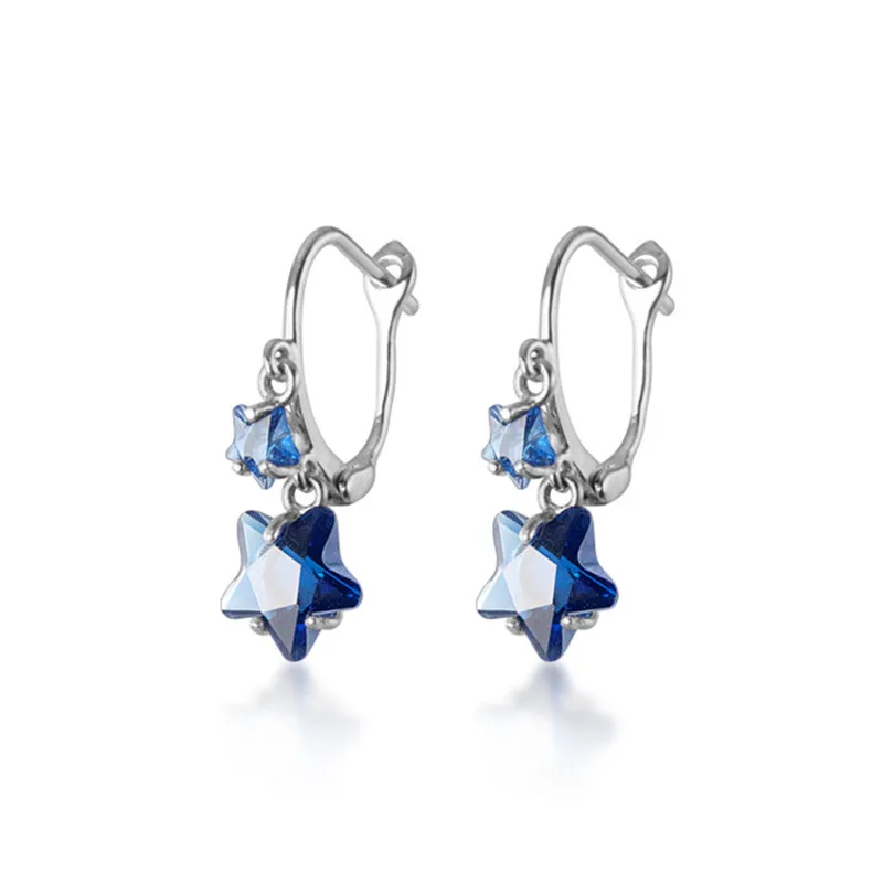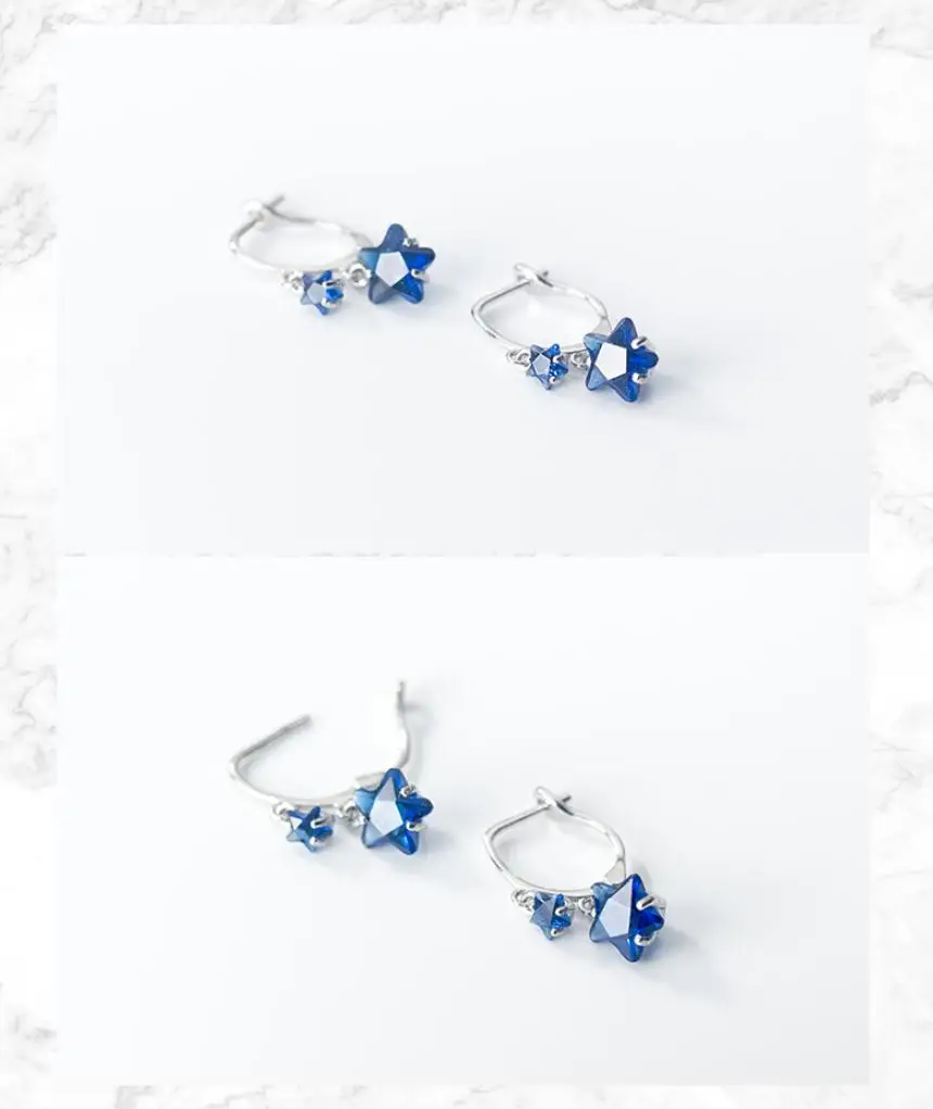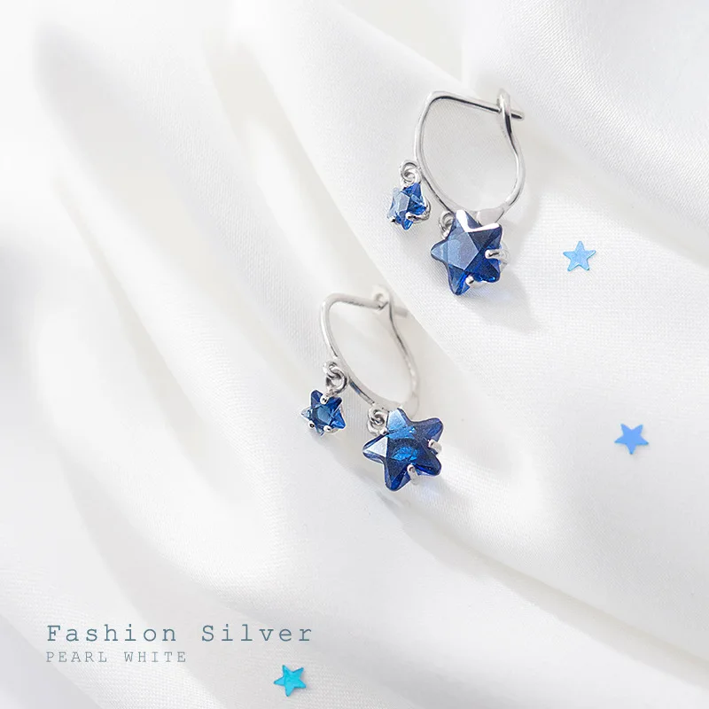 Новейший дизайн синего цвета со стразами и плетением в виде звезды Huggie серьги-кольца 925 стерлингового серебра для женщин и девочек в минималистском стиле ухо, хорошее ювелирное изделие