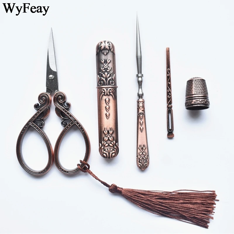 Ретро ножницы винтажные ножницы Awl + Threader + Thimble Ножницы для вышивки портной швейные ножницы швейные принадлежности резец резьбы