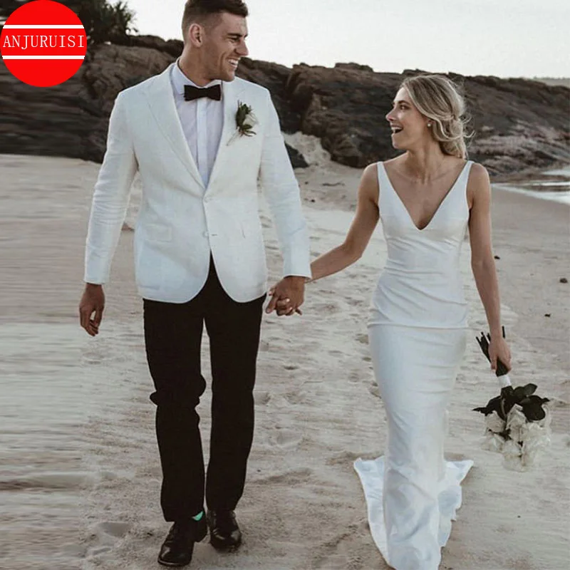 Пикантное пляжное свадебное платье с V-образным вырезом, мягкое атласное свадебное платье-русалка в стиле бохо, свадебное платье с открытой спиной, свадебное платье, 2020