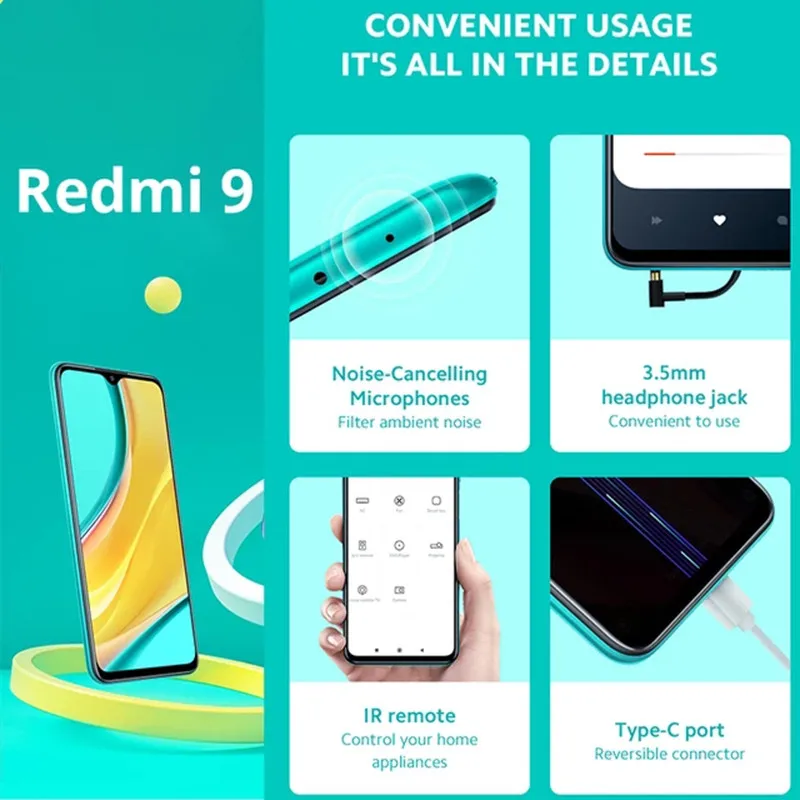 Смартфон Xiaomi Redmi 9, 3 ГБ, 32 ГБ, 4 ГБ, 64 ГБ, Helio G80, камера 13 МП + 8 Мп, FHD + дисплей глобальная версия дюйма, аккумулятор 6,53 мА ч, 5020 дюйма