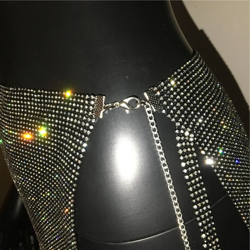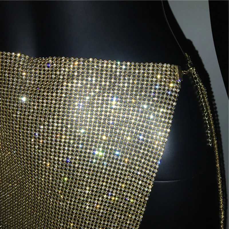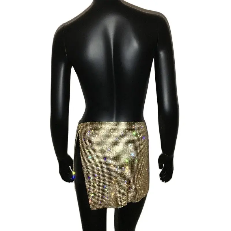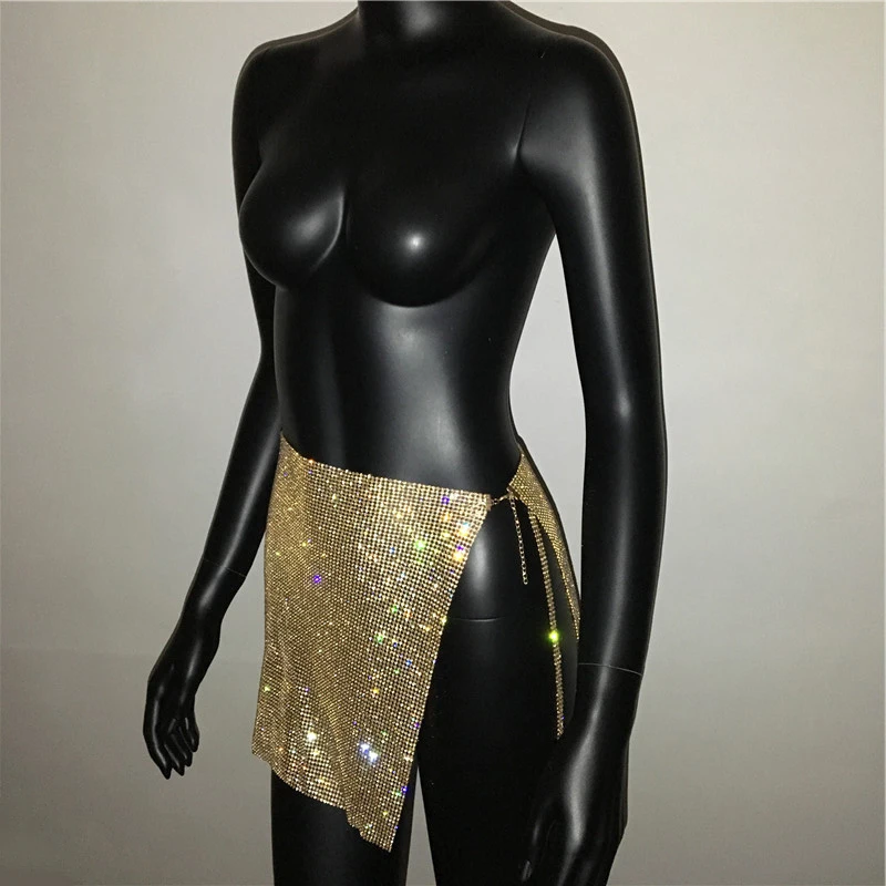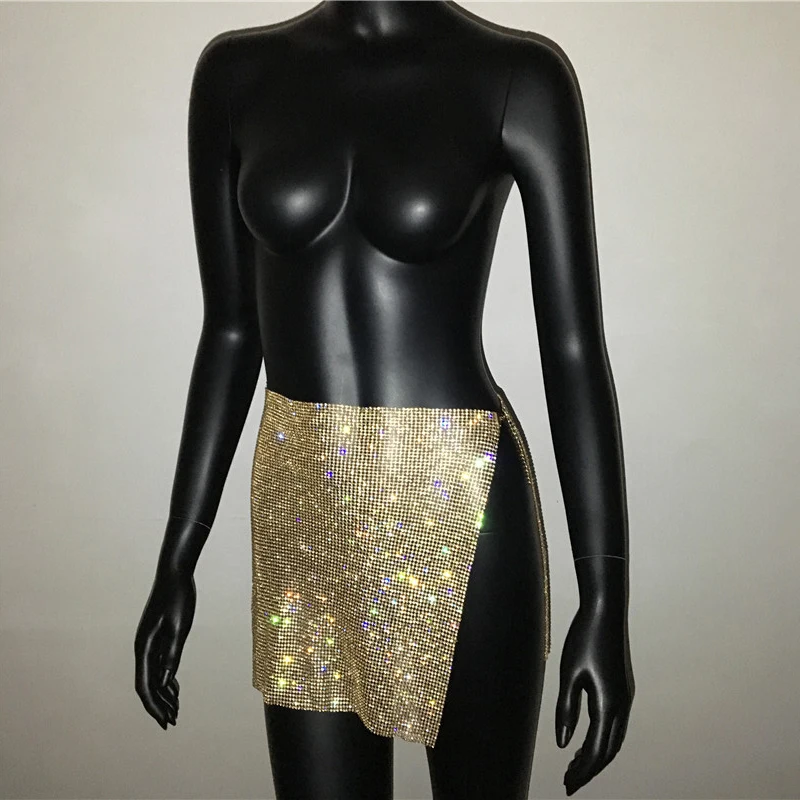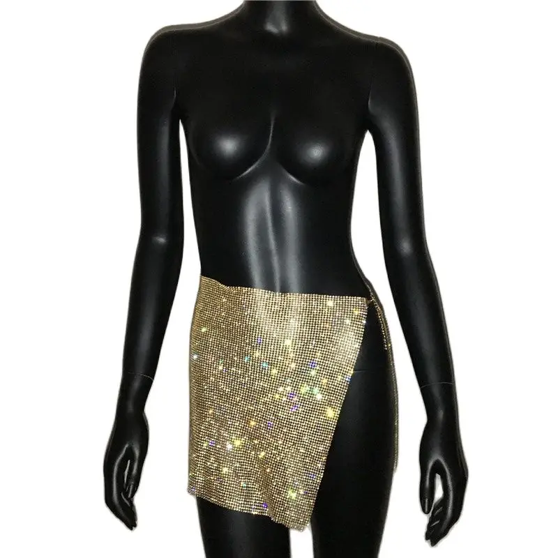 Женская Блестящая юбка Стразы с металлической цепочкой сексуальная клубная женская прозрачная Роскошная блестящая одежда для ночного клуба мини-юбки для вечеринки