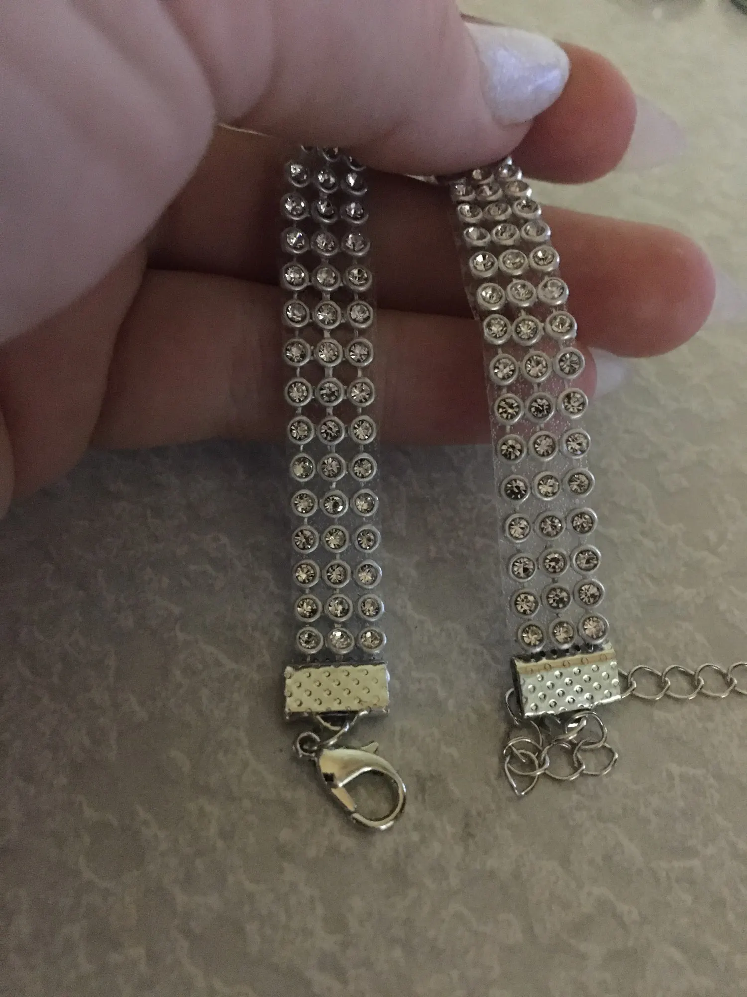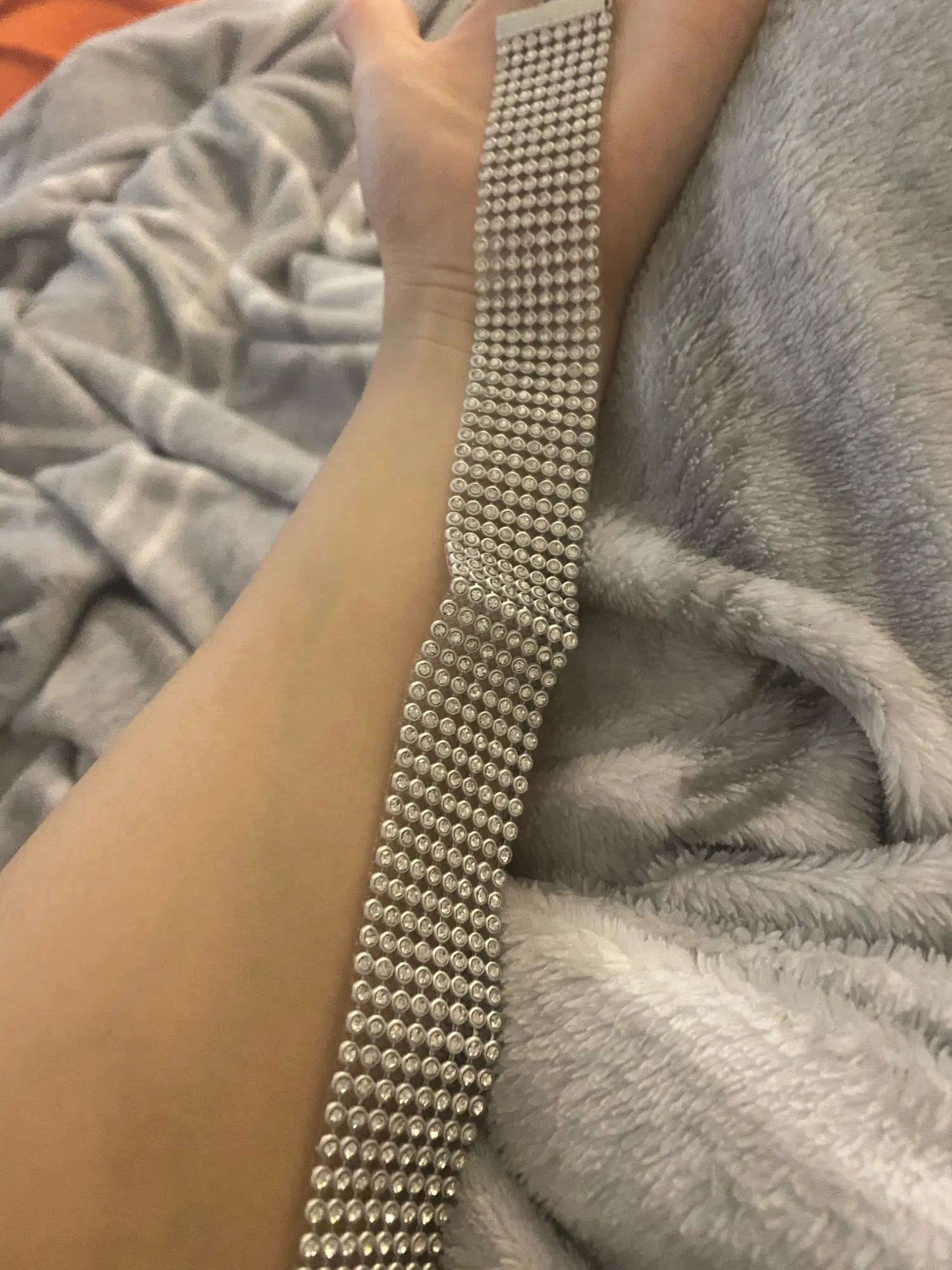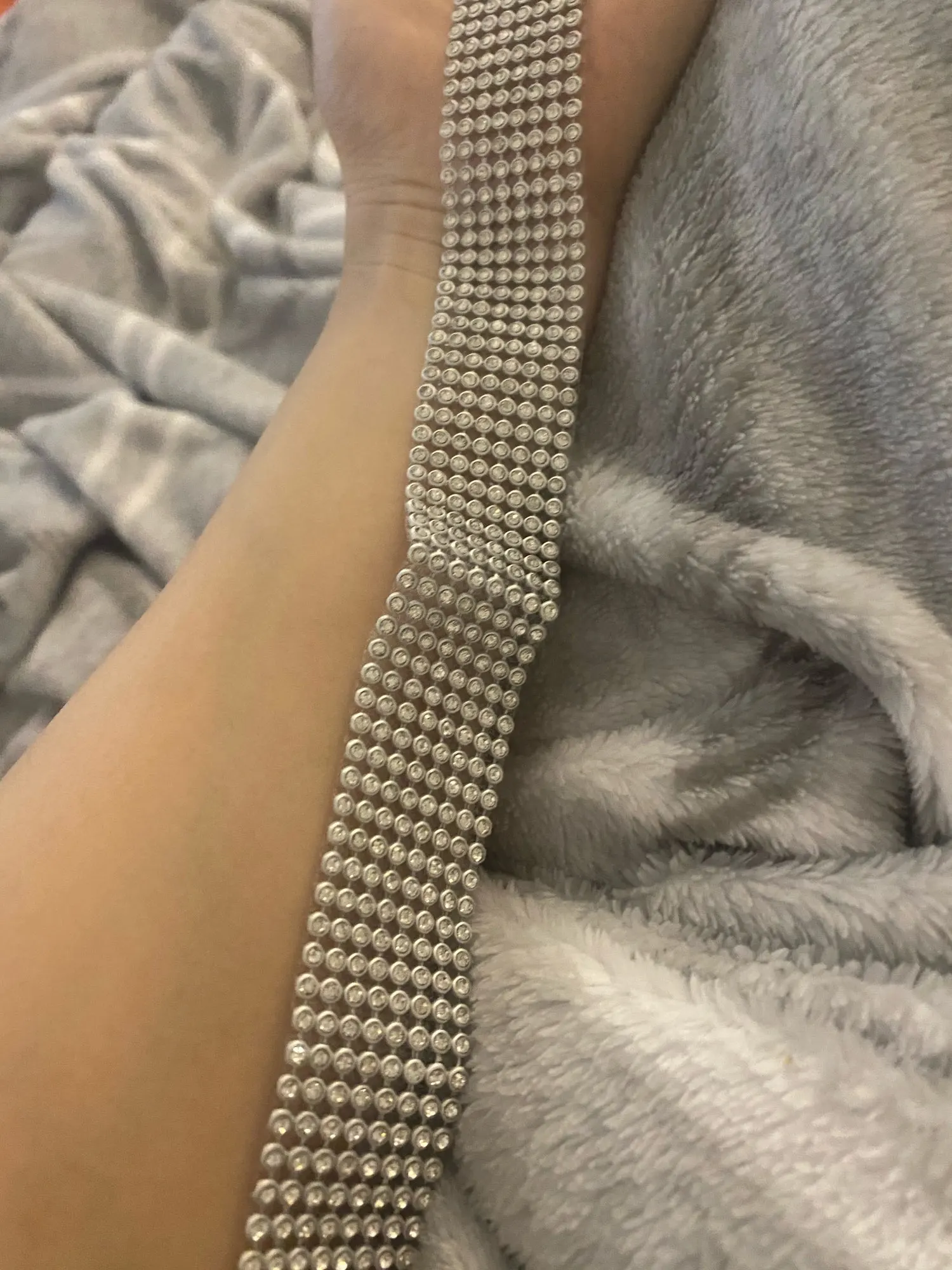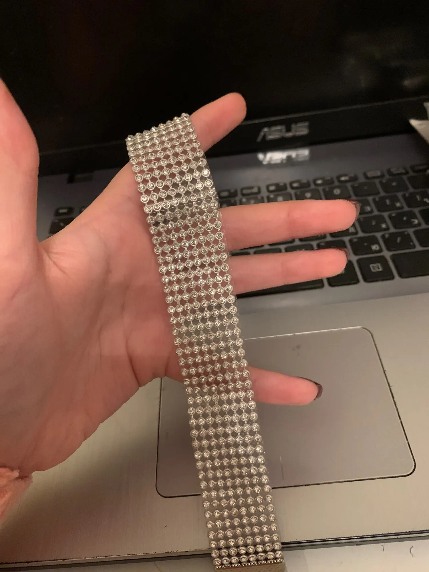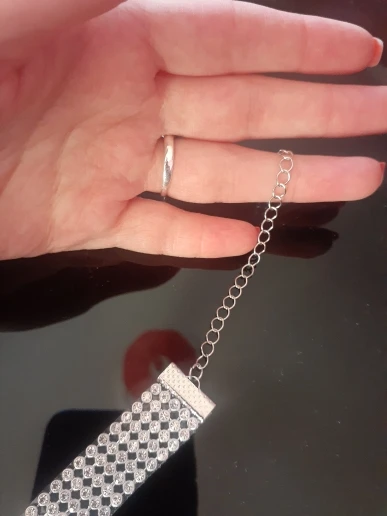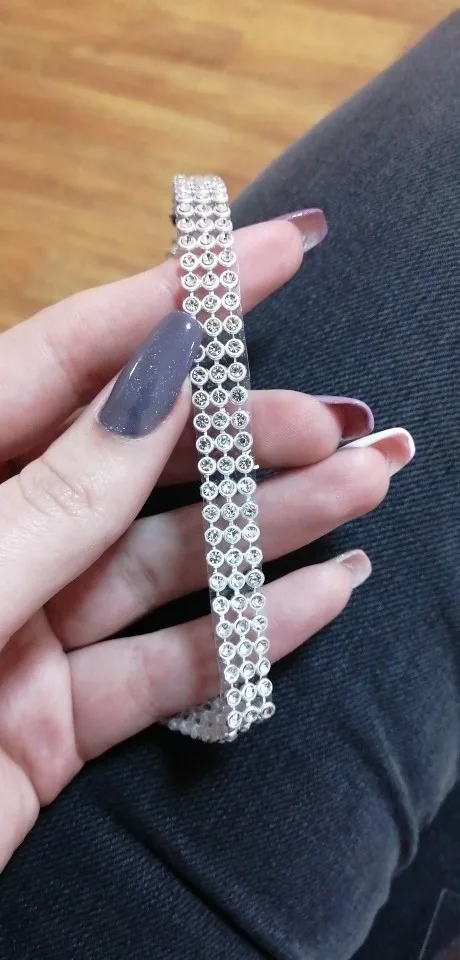 Отлично сидит, не туго, поэтому мне нравится. Регулируется. Блестящие и не пропускают ни одного алмаза.