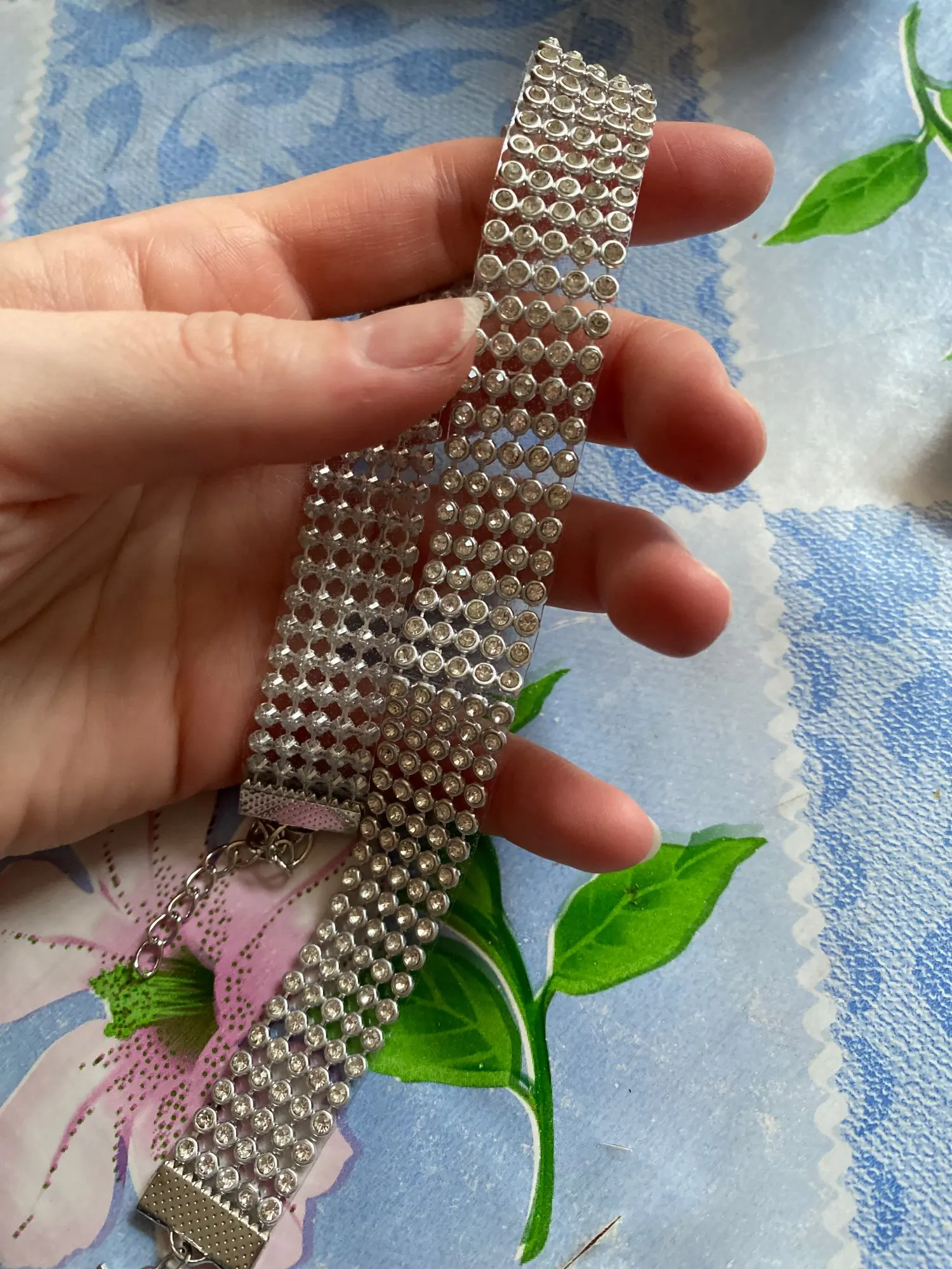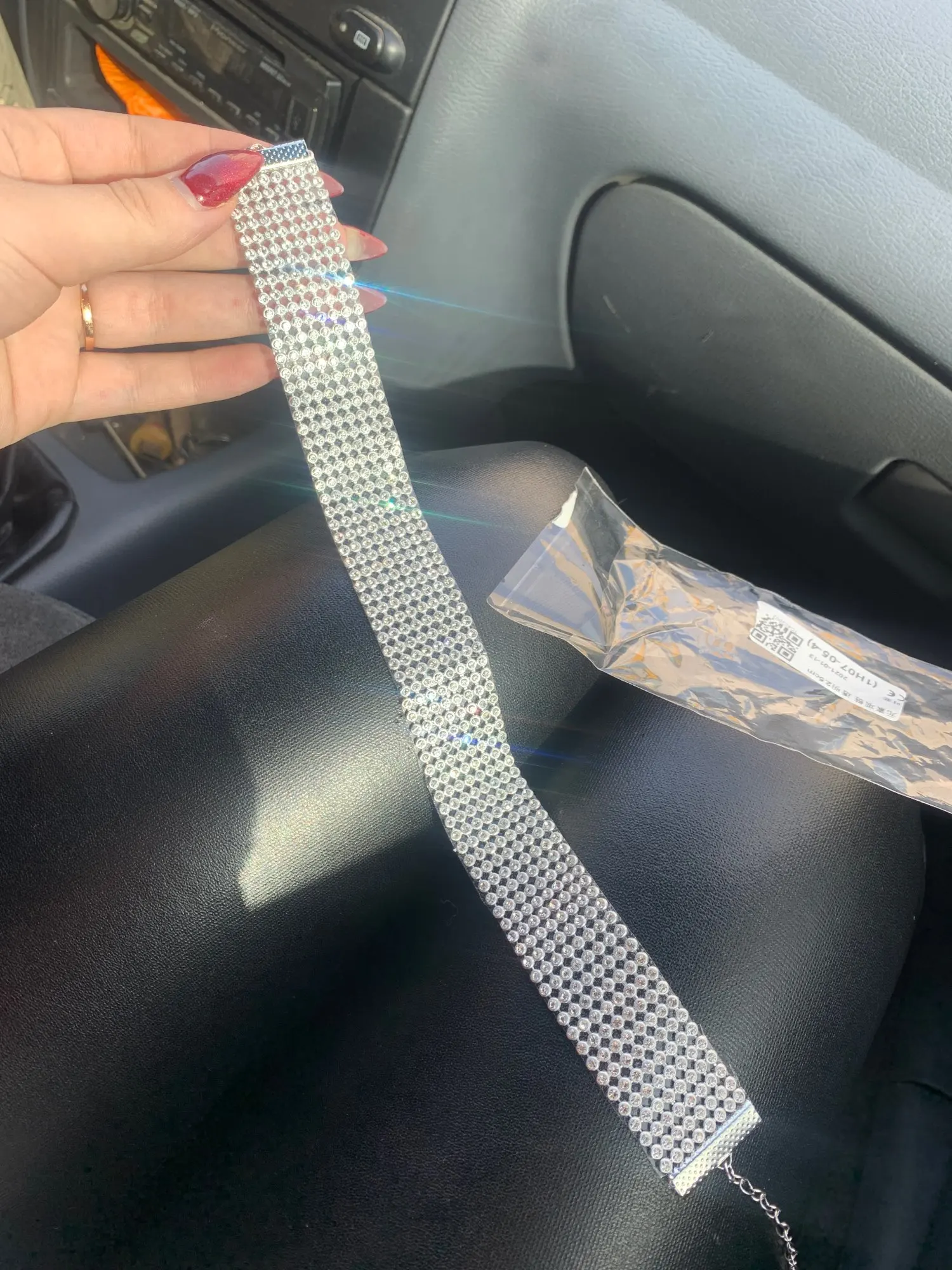 Красивый чокер. Пластик, стразы мелкие вставлены. Блестят. Спасибо продавцу