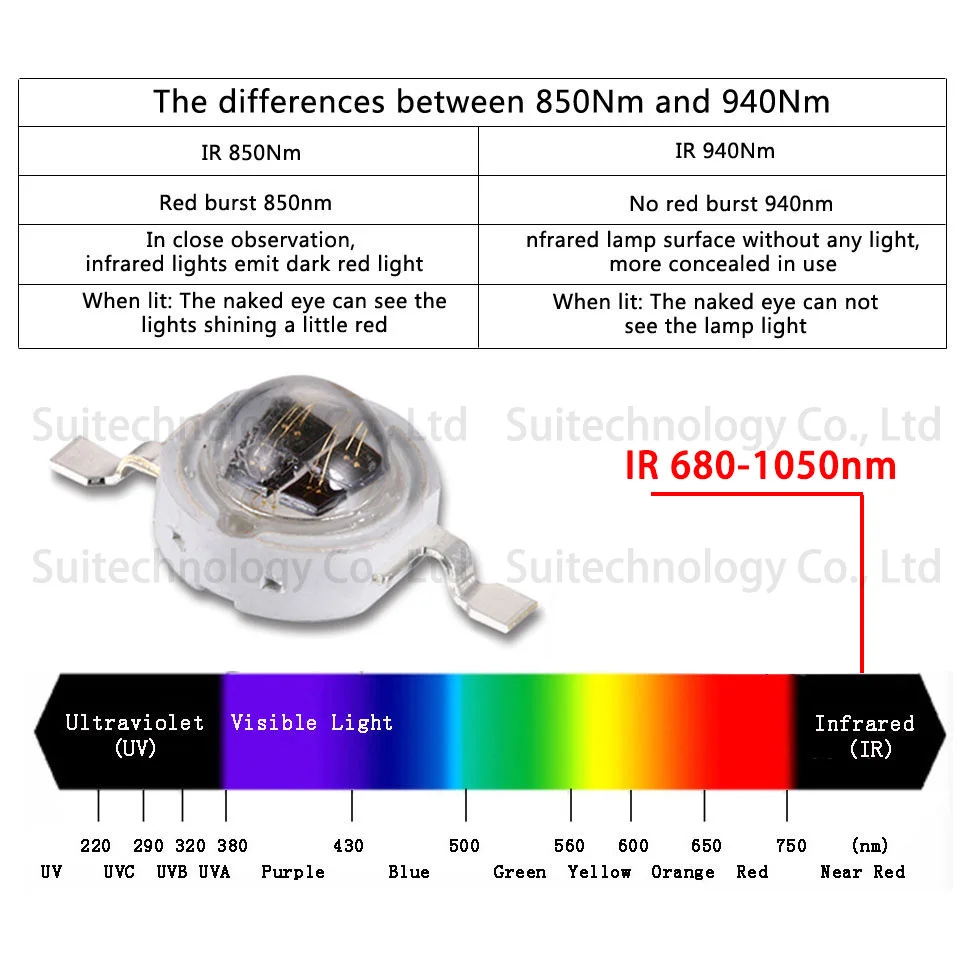 ИК-светодиод высокой мощсветодиодный, интегрированный 680nm 730nm 770nm 880nm 940nm 5 Вт, излучатель, 4 чипа, светильник, Диод для камеры ночного видения