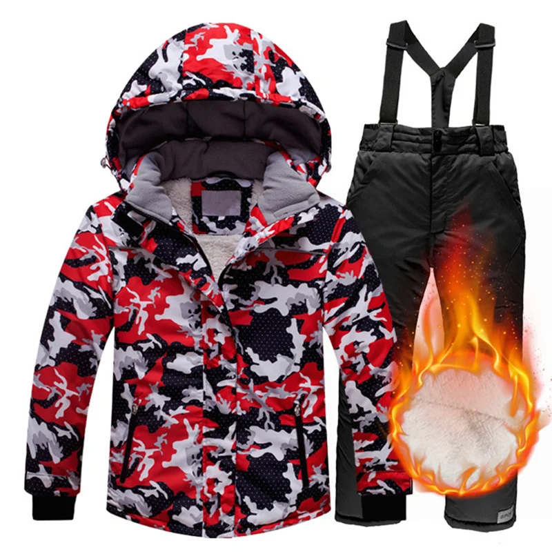 Детский лыжный костюм зимняя обувь с защитой от ветра для детей плотные теплые зимние куртки и пальто комплекты спецодежды для мальчиков на рост от 90 до 160 см Снежный костюм