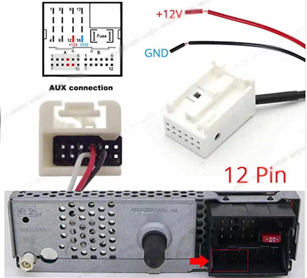 -Вы можете простоВставьте этот элемент в заднюю магнитолу, затем подключите красный провод к 12 В +, черныйПровод до 12В-.