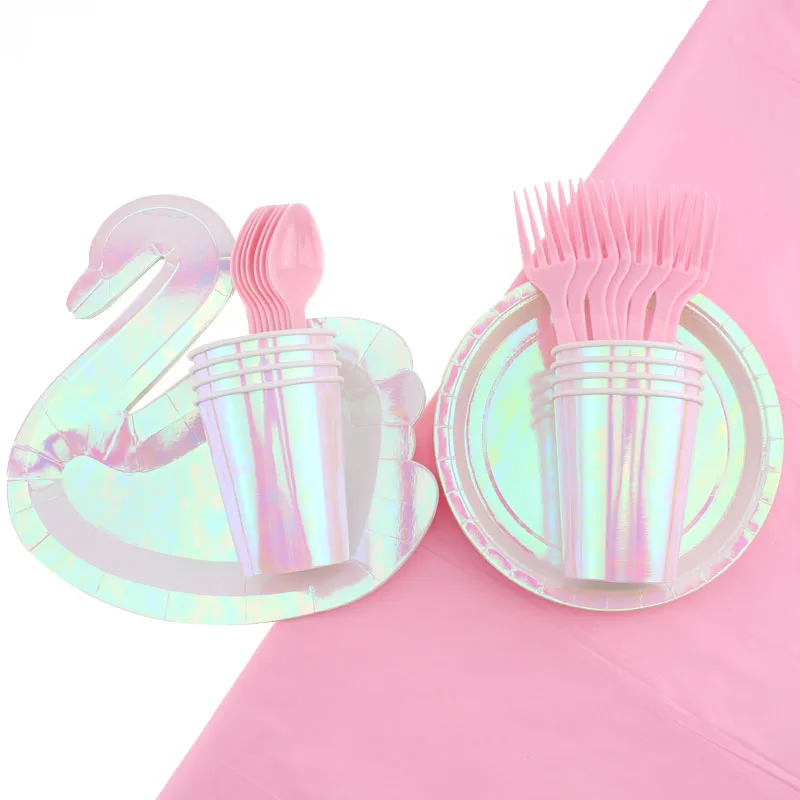 Тарелки одноразовые в форме лебедя, салфетки, принадлежности для дня рождения, украшения для детской вечеринки