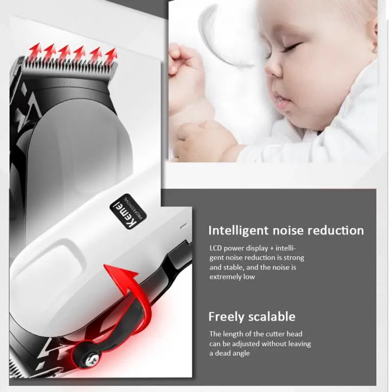 Машинка для стрижки волос, аккумуляторная, с интеллектуальным шумоподавлением, ЖК-дисплеем
